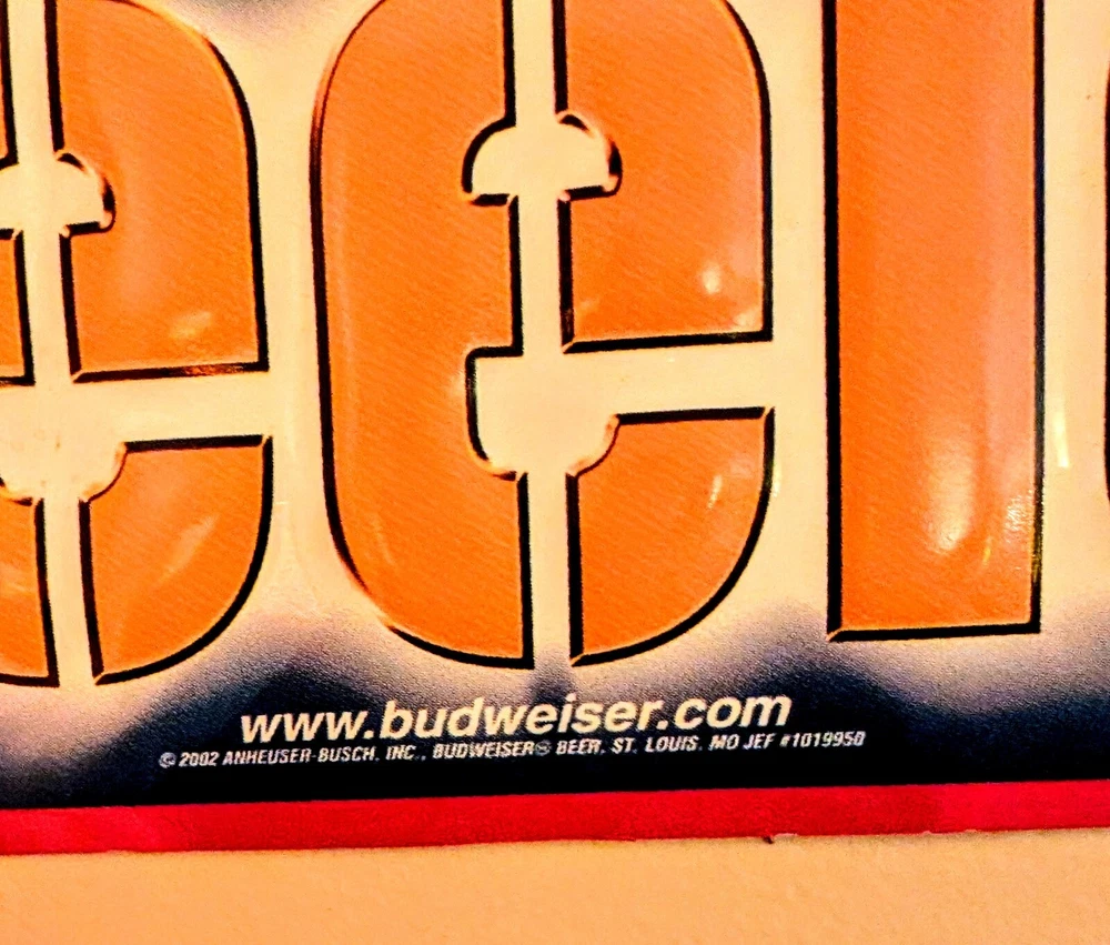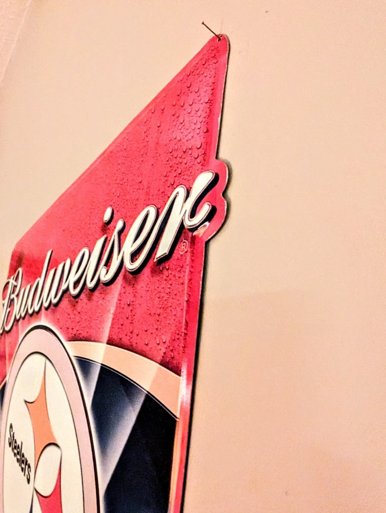 Budweiser and Pittsburg Steelers metal sign from 2002. This sign was only available to bars at the time and is in almost perfect shape. Hung in my aunt's bar in Parkersburg, WV.