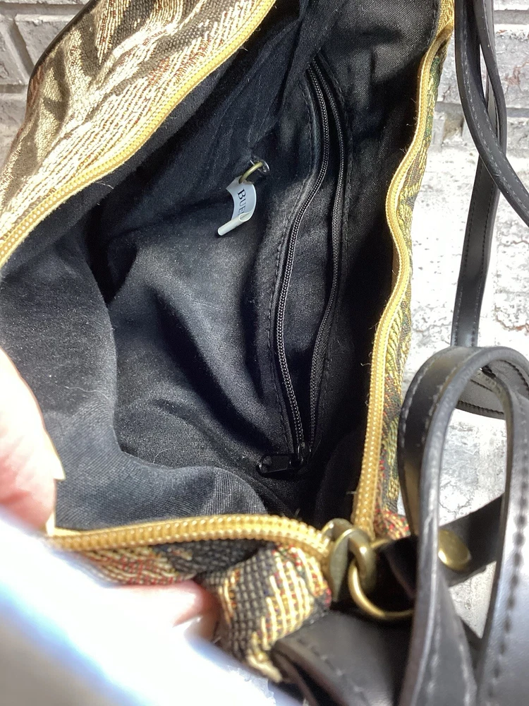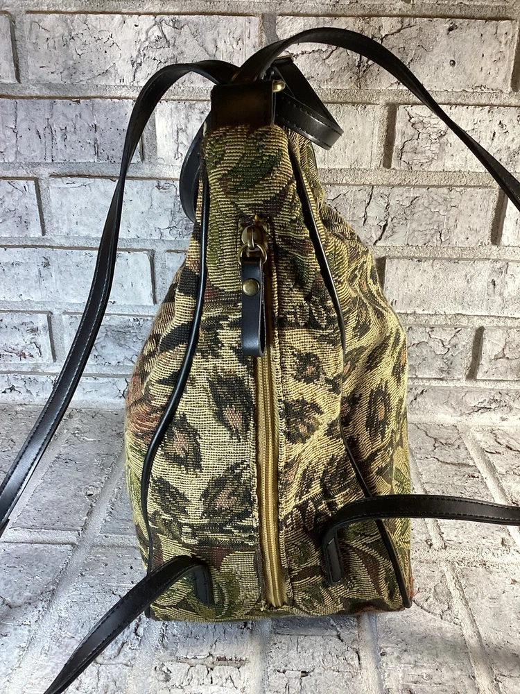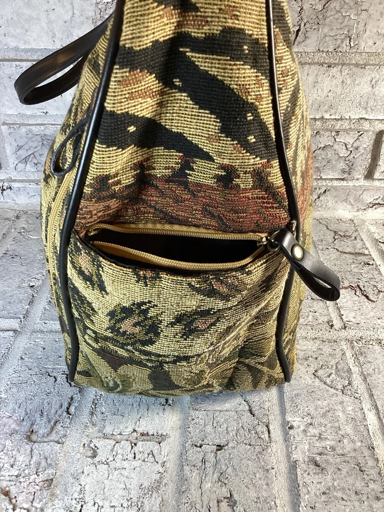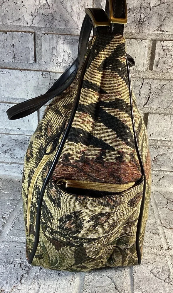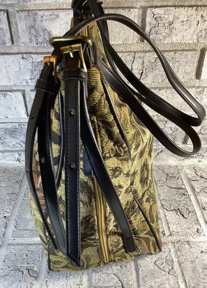 Floral and zebra/leopard (?) print tapestry bag. Two outside pockets, one leads to the interior and the other one is its own pocket. Double straps are adjustable. The bag is in excellent condition, almost no wear on it. Please see pictures for more details. I’m very happy to answer any questions you have. Thank you for stopping by!
