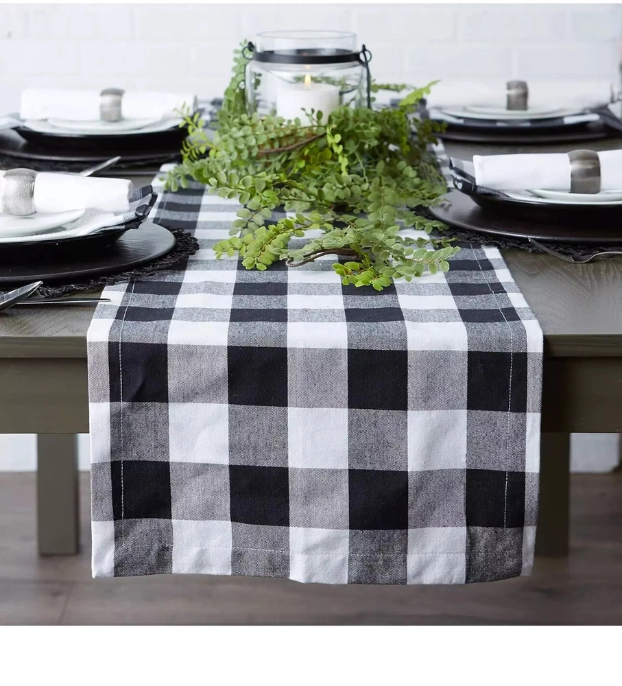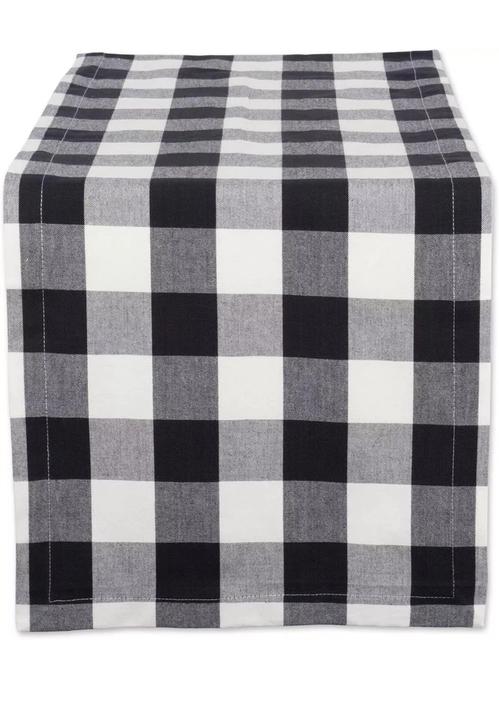 Buffalo Check Collection, Classic Farmhouse Table Runner, 14X108, Black & White