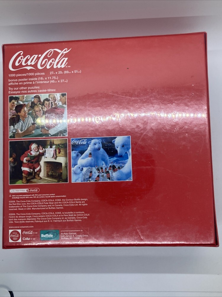 This 1000 piece jigsaw puzzle features the beloved Buffalo brand and a Coca-Cola theme. It is a great addition to any puzzle collection and provides hours of entertainment for both kids and adults alike. The puzzle was manufactured in 2010 and has never been opened. The puzzle is perfect for anyone who loves Buffalo and Coca-Cola, and it's sure to be a hit with puzzle enthusiasts of all ages. With its high-quality construction and attention to detail, this puzzle is sure to provide a challenging and enjoyable experience. Add it to your collection today! . New sealed