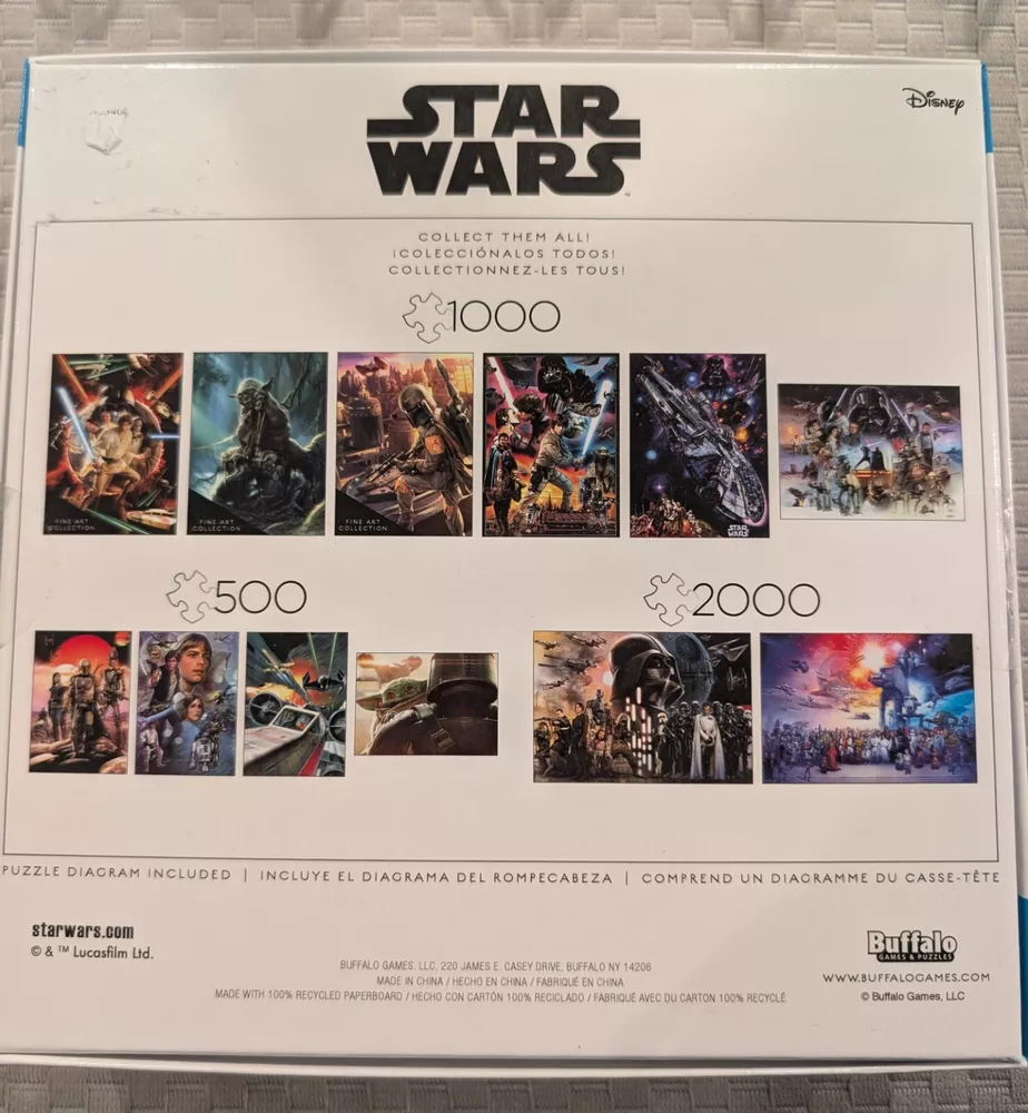 Immerse yourself in the world of Star Wars with the Buffalo Games 3370 This is the Way Jigsaw Puzzle. Featuring a vibrant and colorful design, this 1000-piece puzzle is perfect for fans of all ages. The puzzle is made of high-quality cardboard material and is suitable for ages 14 and up. The puzzle is a great addition to any collection and is perfect for family fun nights or solo relaxation. With its Movie & TV theme and Star Wars character family, it is sure to please any fan of the franchise. Get ready to explore the galaxy far, far away with this exciting and challenging puzzle. This puzzle was previously put together and then coated with a mod-poge varnish for a truly one of a kind look and feel. You will not be disappointed with this great addition to your puzzle library.