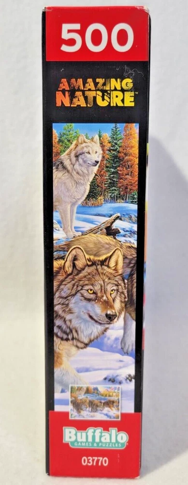 This amazing puzzle from Buffalo Games features beautiful and majestic wolves running together as a pack. With 500 pieces, this puzzle promises to provide hours of fun for puzzle enthusiasts of all ages. The puzzle is made of high-quality cardboard material which ensures durability and longevity. The puzzle is recommended for ages 10 and up and has never been used before. It comes from a smoke-free household and is a complete set with a puzzle diagram included. The puzzle is perfect for those who love animals and nature and is a great way to spend quality time with loved ones. The puzzle box does show some wear. Please see the pictures. Doing puzzles has some hidden benefits . Excellent qualities : Cultivate concentration, patience, and temper your will Movement development : Train hand-eye coordination and precise small movements Spatial intelligence : Improve visual discrimination of colors and shapes Critical thinking ability : Understand the relationship between parts and the whole, and draw inferences from one example to explore the future Relaxes your mind : Relieve work pressure and release yourself Brain development : Enhance memory and may help prevent or slow brain degeneration Each item we ship is carefully packaged to prevent any damage and is shipped immediately with tracking.