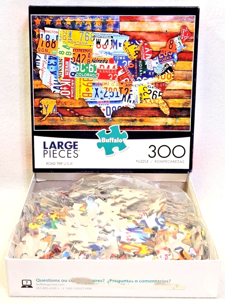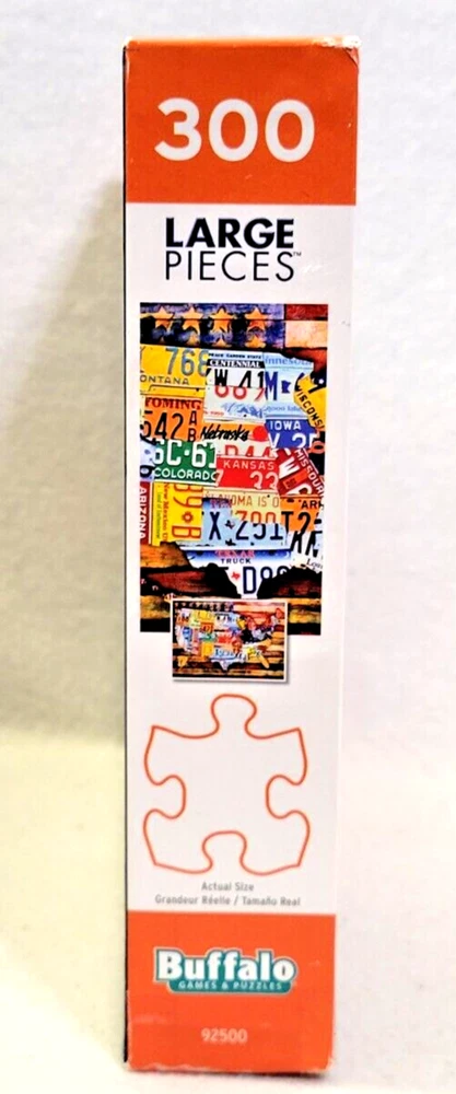 Explore this license plate map of the United States with this 300-piece jigsaw puzzle, which is perfect for puzzle enthusiasts and travelers alike. The interlocking pieces ensure a seamless fit while the reference poster provides additional guidance. This puzzle is made from high-quality cardboard material and comes from a smoke-free household. Suitable for ages 8 and up, this puzzle is sure to provide hours of entertainment for the whole family. Add this puzzle to your collection today and experience the joy of completing a beautiful map of the USA. Doing puzzles has some hidden benefits . Excellent qualities : Cultivate concentration, patience, and temper your will Movement development : Train hand-eye coordination and precise small movements Spatial intelligence : Improve visual discrimination of colors and shapes Critical thinking ability : Understand the relationship between parts and the whole, and draw inferences from one example to explore the future Relaxes your mind : Relieve work pressure and release yourself Brain development : Enhance memory and may help prevent or slow brain degeneration * We did not work the puzzle or count the pieces, but we verify the number count at your request . Each item we ship is carefully packaged to prevent any damage and is shipped immediately with tracking.