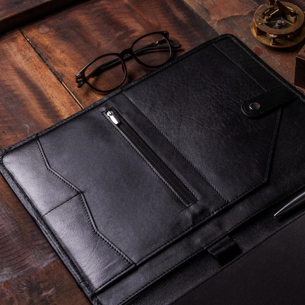 1. This buffalo leather portfolio is a game-changer for professionals! The supple, high-quality leather feels luxurious and ages beautifully, while the built-in cardholder keeps everything organized. Love the included premium pen—perfect for making a polished impression. The craftsmanship is outstanding, with each piece having its own unique character. Sturdy yet stylish, it’s a timeless accessory that elevates any business meeting. Highly recommend!