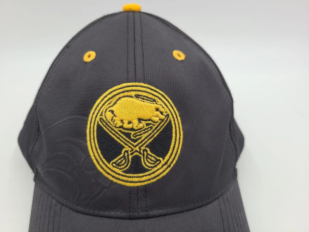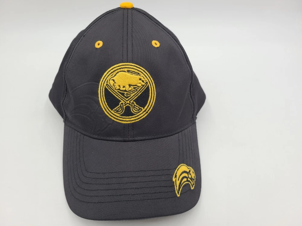 The strap seems to be cut, but it looks like it will still fit most adult sized heads. Buffalo Sabres Fan Favorite Adjustable Hat Cap Men Women NHL Hockey Gray Yellow. EACH ADDITIONAL HAT PURCHASED IS ONLY $1 ADDED SHIPPING!