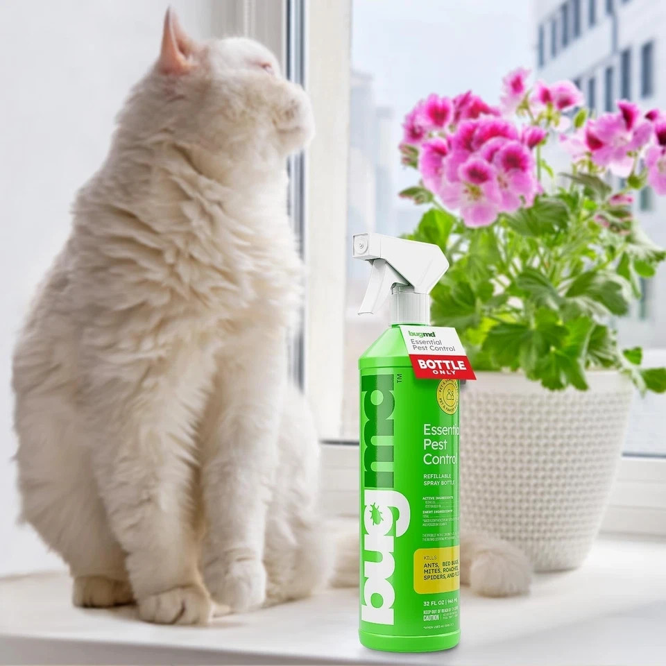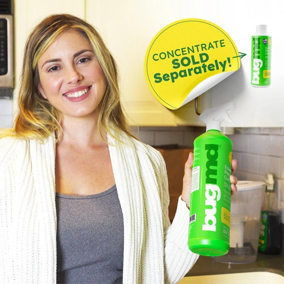 Bug MD 32 Fl. Oz. Bottles only for Essential Oils No Bugs Live. About this item: Versatile Use: The BPA-Free highly durable material makes this bottle a great companion for BugMD essential pest concentrate and BugMD Flea and Tick Concentrate! Built To Last: The BugMD Spray bottle is manufactured with high grade materials such as BPA-Free HDPE plastic and propylene, keeping the bottle durable and chemical resistant and will stand up to long term use. Our bottle was designed for constant reuse without degrading or wearing out, so you can feel comfortable relying on it. Multi Spray Function: Our adjustable nozzle features 3 spray modes-lock, steady mist, and jet stream. From a fine spray to a targeted application, the BugMD bottle can work for a multitude of applications with a simple twist of the nozzle. Plus, your bottle will stay locked tight and leakproof with our lock mode. Refill and Repeat!: This spray bottle also pairs perfectly with the BugMD Essential Concentrate (sold separately). Save money, stop throwing out single use spray bottles, and choose the refillable option.