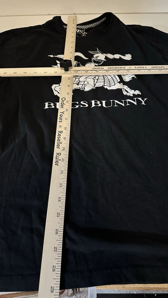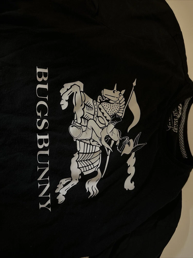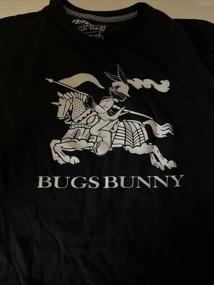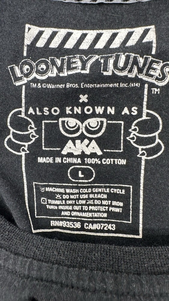 Show off your love for the classic cartoon character, Bugs Bunny, with this black and white Loony Tunes AKA t-shirt. The shirt features a large image of Bugs Bunny on the front, making it the perfect addition to any fan's collection. The shirt is made for men, with a regular size fit, and is available in size L. The t-shirt is made of high-quality materials and is designed to be comfortable worn for long periods of time. The cartoon theme makes it a great addition to any casual outfit, and it is sure to turn heads wherever you go. Add this t-shirt to your wardrobe today and show off your love for Bugs Bunny!