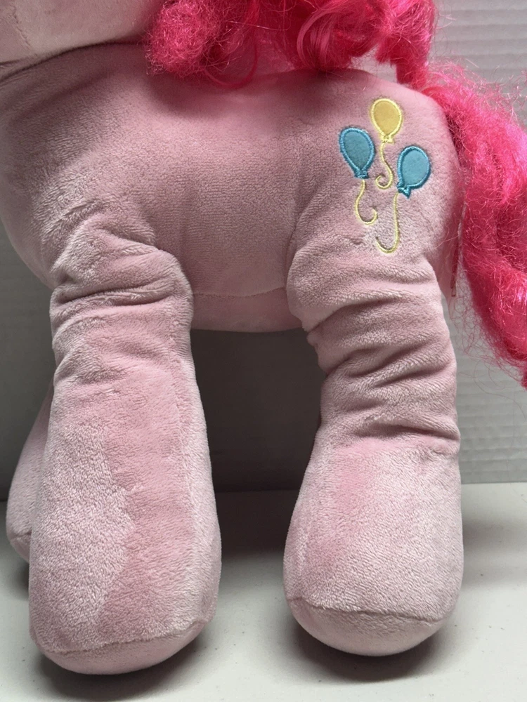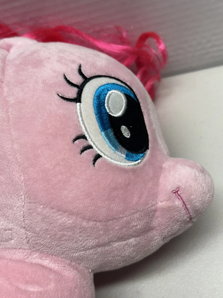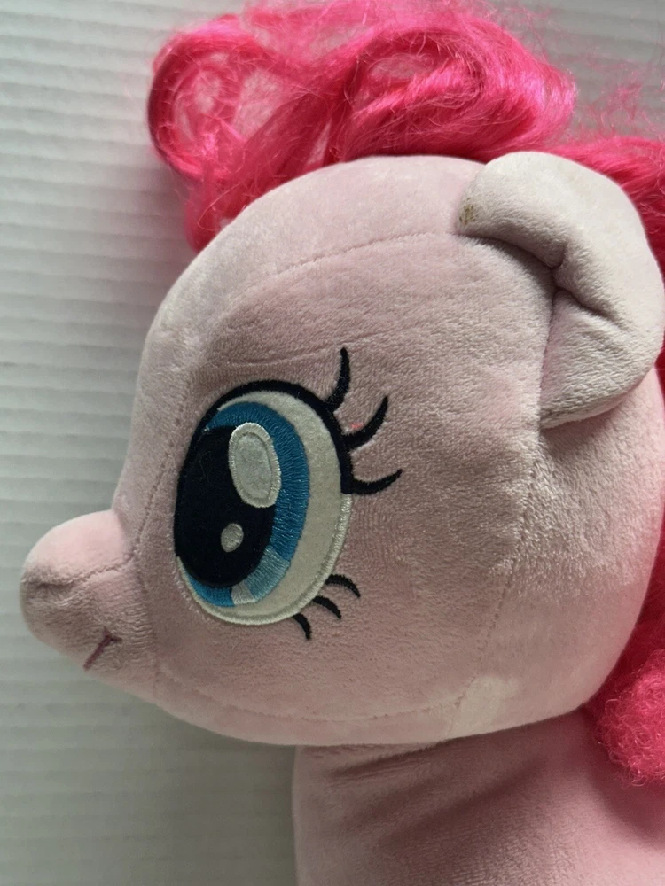 The product is a 2013 Build-A-Bear Workshop plush stuffed animal of Pinkie Pie from My Little Pony. It is a medium-sized (16") pink horse with characteristics representing the character Pinkie Pie from the My Little Pony franchise.