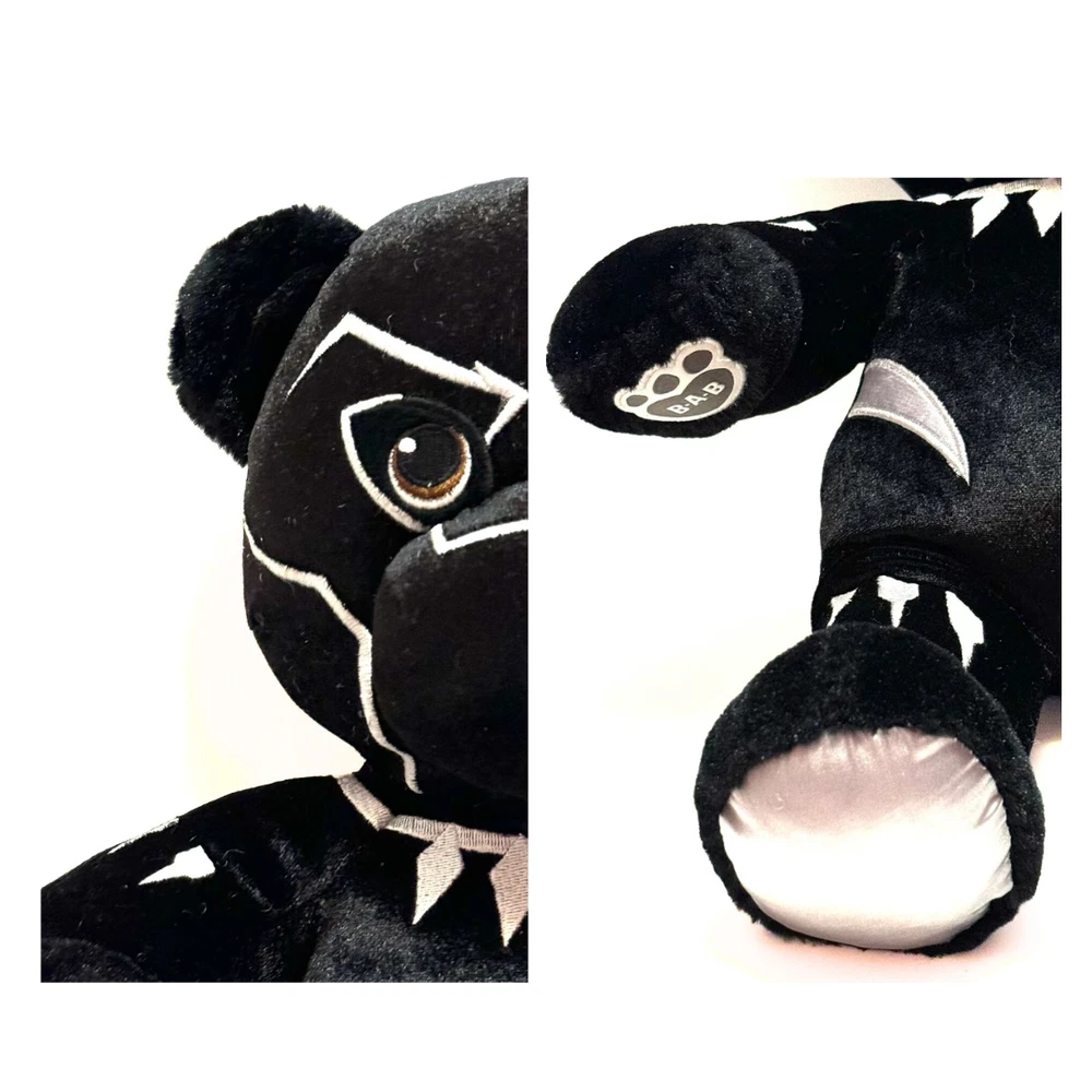 Build A Bear Wakanda Forever Black Panther Stuffed Plush Animal . Beautiful Shiny Black Collectible Bear. : Condition : Good Pre-Owned ( No Smells / No Stains / No Fabric Defects ) : Please See All Pictures . : Dimensions : Height - 16in x Width - 10in : Features : - Embroidered Gray Raised Accents Decorate Black Plush. - Legible & Intact Tags Attached . - Black Panther Graphic on Paw . : Thank you for your interest. : Shipping : - Plush will be securely packaged in cushioned polymailer. - Mailed Within 3 Business Days.
