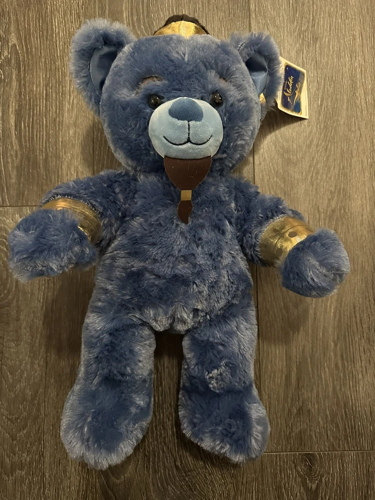 This 16-inch plush toy from Build-A-Bear Workshop features Genie from Disney's Aladdin in his iconic blue color. Made from soft and cuddly materials, this retired collectible bear is perfect for all occasions. The bear's black eyes and friendly expression make it a charming addition to any collection. Ideal for fans of the beloved franchise, this BABW bear is a must-have for any Disney collector. Its unique features and high-quality construction make it a valuable and treasured item. Celebrate your love for Aladdin and add this beautiful Genie plush toy to your collection today. 12-5-24