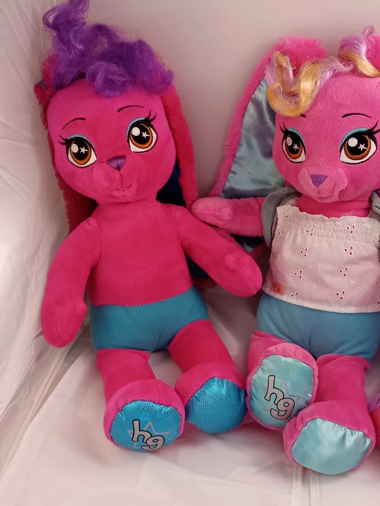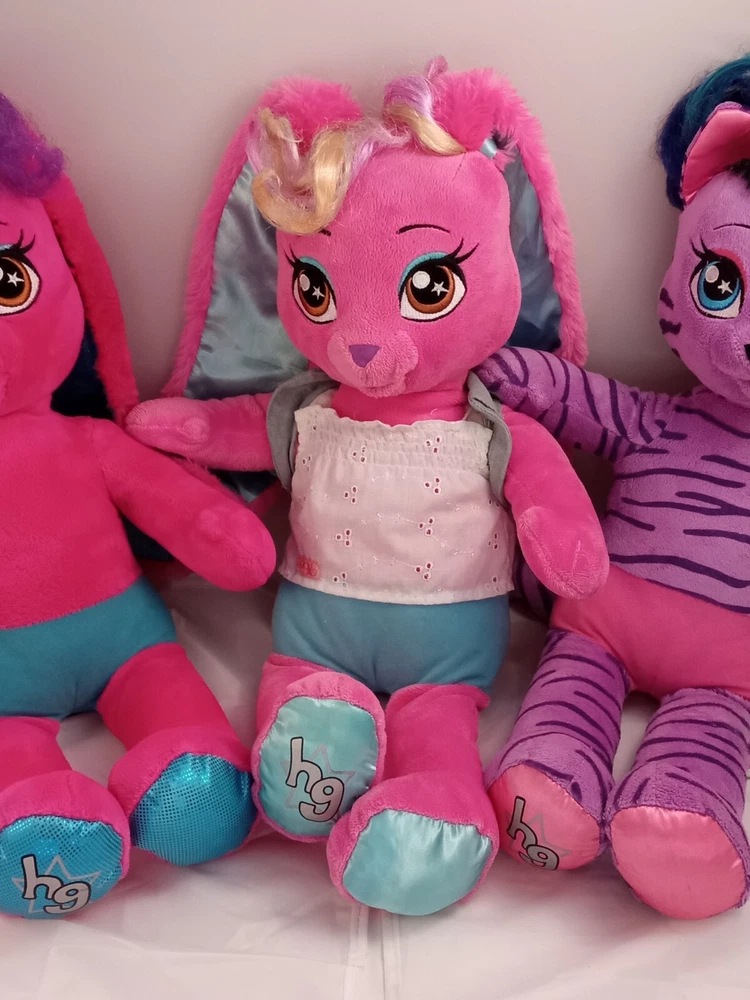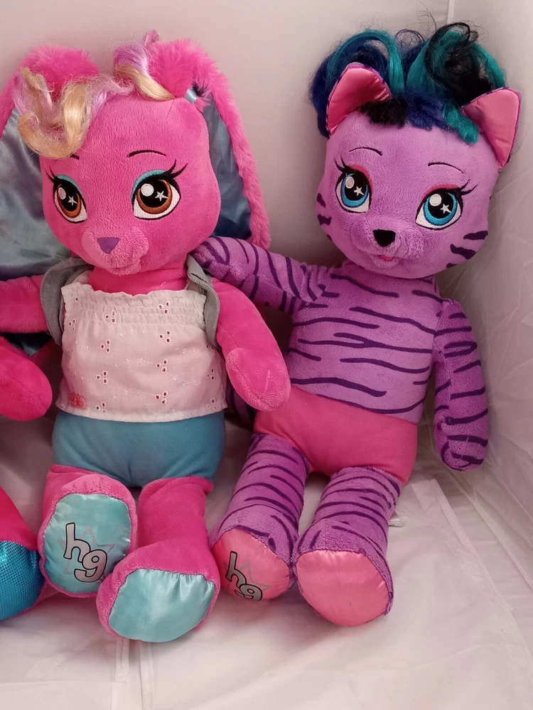 Explore the whimsical world of Build-A-Bear Workshop with this delightful lot featuring the Honey Girls' Teegan in a vibrant purple zebra print plush. Perfect for collectors and kids alike, each medium-sized (14-24 in) plush toy is crafted to capture the hearts of boys and girls, spanning ages from 3 to 16 years. Adorned in the signature colors and pattern of the beloved Honey Girls character family, these plush pals are a fantastic addition to any collection or playtime routine. They reflect the quality and charm of the 2016 collection, and were manufactured in China, ensuring the high standards of Build-A-Bear Workshop. Dive into a world of imaginative play with these adorable plush companions. Build A Bear Risa Pink Bunny Honey Girl With Skirt 20" Stuffed Animal Plush