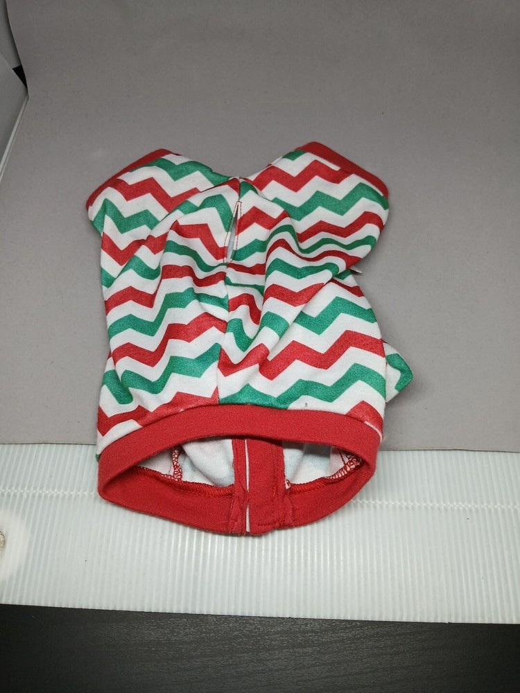 This product is a used Build-A-Bear Workshop clothing item designed as a red and green chevron sleeper for a reindeer stuffed animal. The product is titled "Build A Bear Merry Mission Red/Green Chevron Reindeer Sleeper".