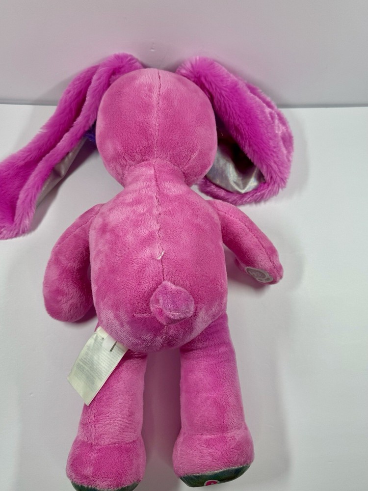 This adorable Build-A-Bear Workshop plush toy is the perfect addition to any collection. With its soft pink color and cute bunny design, it is sure to bring a smile to anyone's face. Measuring at 20 inches tall, this plush toy is perfect for cuddling and playing with. The Honey Girl collection features this original and licensed reproduction of a Pink Rock Star Bunny Rabbit. It comes with a dress and clothing, making it perfect for any occasion. The brown eyes and plush material add to its realistic and charming design. This item is a must-have for any fan of Build-A-Bear Workshop or rabbits in general.