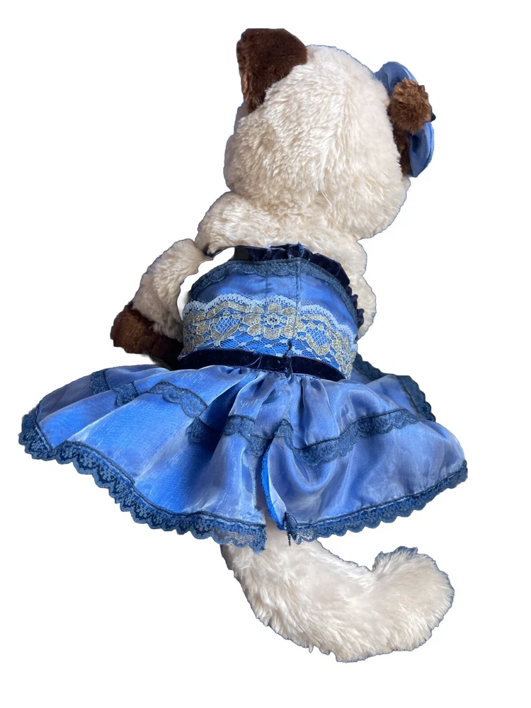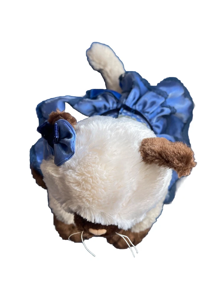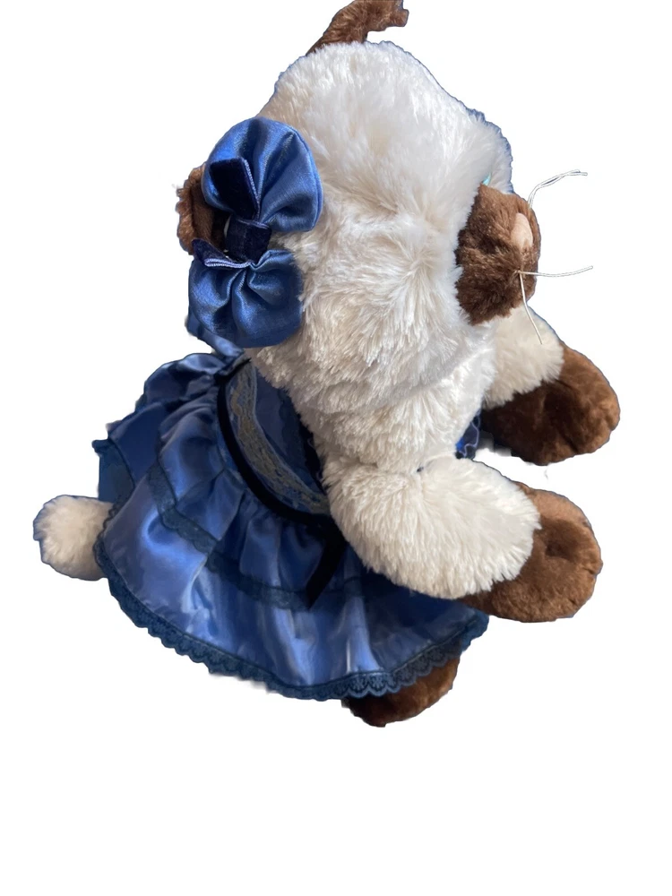 The "Build A Bear Siamese Cat Plush Promise Pet" is a 12-inch plush toy from the Build-A-Bear Workshop collection. It features brown and cream colors with blue eyes, resembling a Siamese cat. The toy comes with a dress included and is part of the Promise Pets collection, designed for animal lovers. This original plush bear represents a cat and bear hybrid, making it a unique addition to any stuffed animal collection, especially for those who appreciate the charm of Siamese cats.