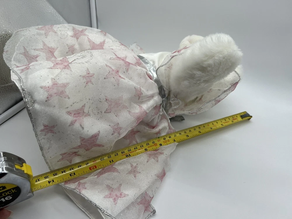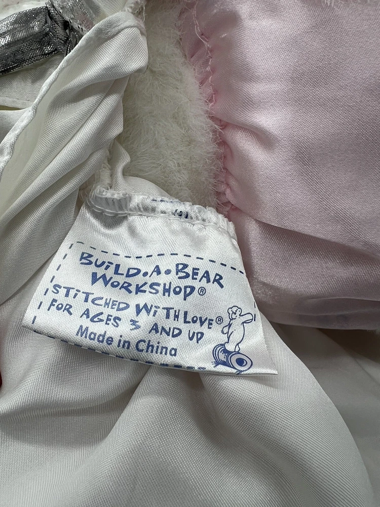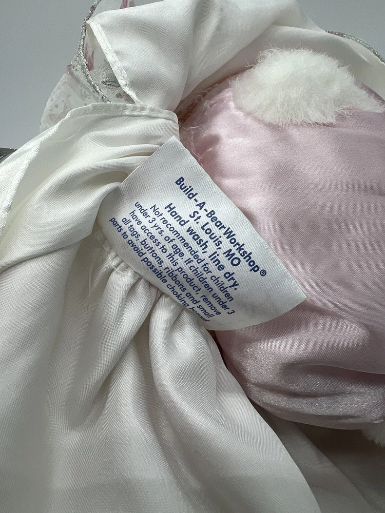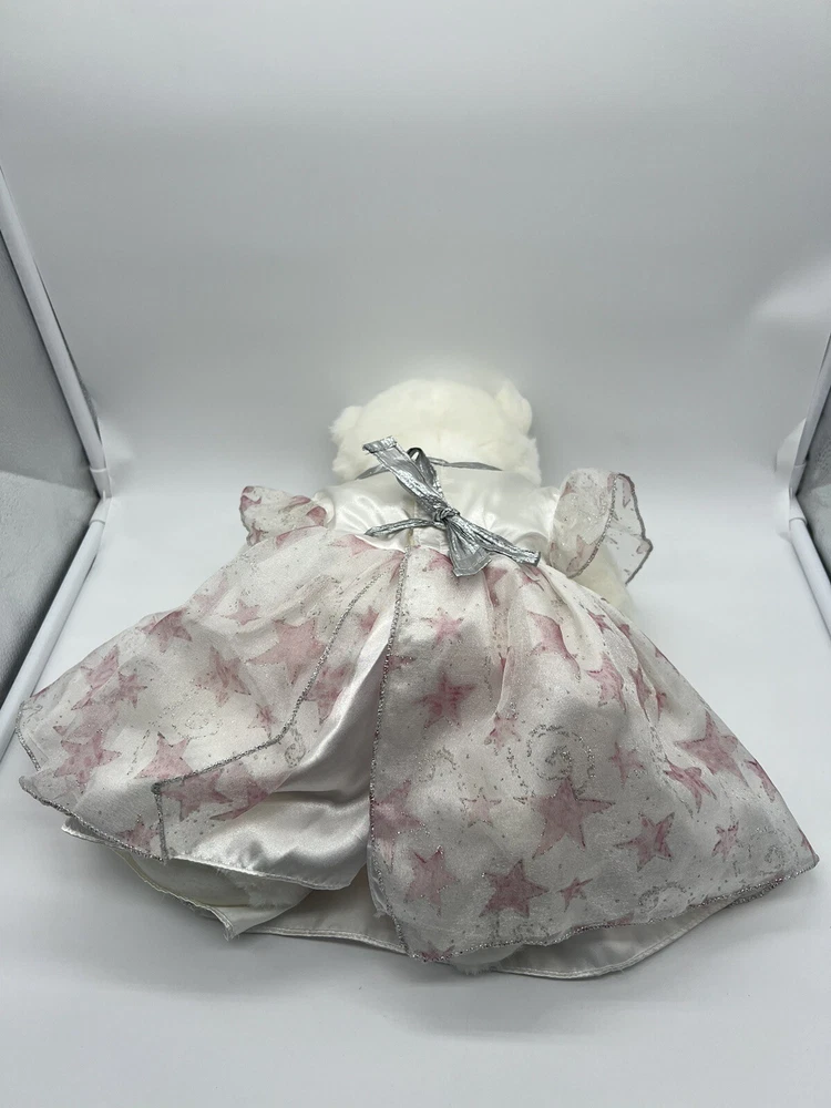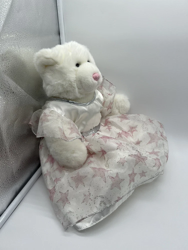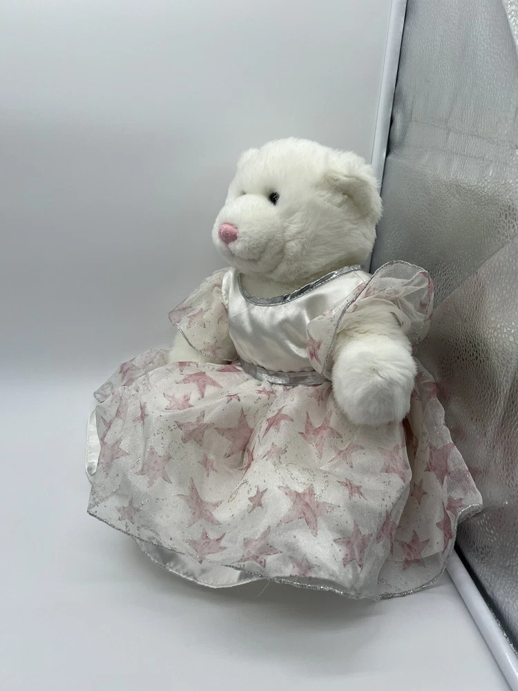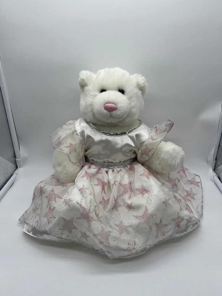 Build A Bear White Bear Pink Nose Plush Stuffed Animal with dress. Used. Item: N10