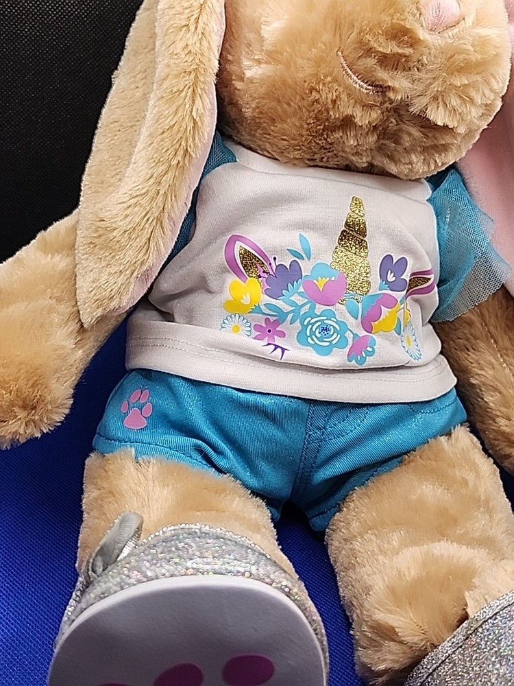 PAWLETTE BUNNY WITH FULL OUTFIT AND SHOES Build-A-Bear Workshop with the delightful Pawlette Bunny Rabbit, a 16" plush SEE PHOTOS! LIGHT BROWN PINK LONG EARS WHITE UNICORN T SHORT SLEEVE SHIRT SILVER GLITTER SHOES LIGHT BLUE METALLIC SHORTS Decked in an adorable outfit complete with a shirt, shorts, and shoes 2018 Spring Collection is an emblem of joy and playfulness, perfect for all occasions. FAST SHIPPING AVAILABLE