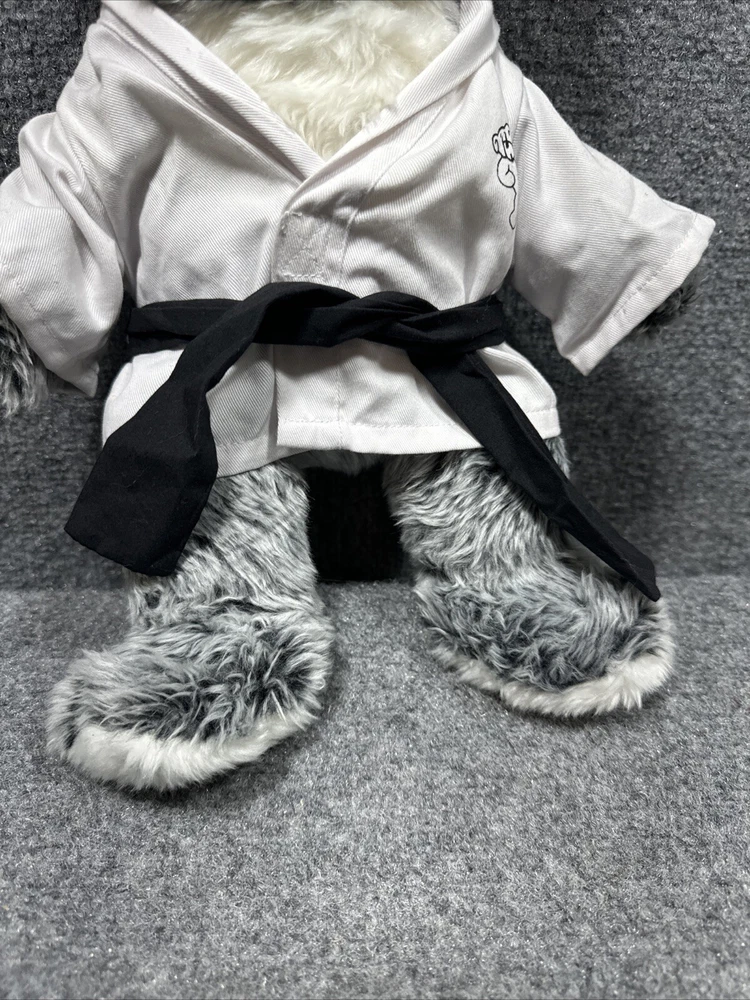 This 15-inch Build-A-Bear Workshop plush toy features a cute koala bear dressed in a karate outfit. The bear has black eyes and gray fur, and it comes with three items included: a koala hat, a karate outfit, and a pair of black boots. This original, licensed reproduction is perfect for all occasions and would make a great addition to any Build-A-Bear collection. The bear is not antique or vintage, but it is a single unit with a plush material. It is not handmade or personalized, but it features clothes and is part of the Build-a-Bear franchise. The toy was manufactured in China between 2010 and 2019 and is categorized as Dolls & Bears, Bears, Clothing & Accessories, and Bears.