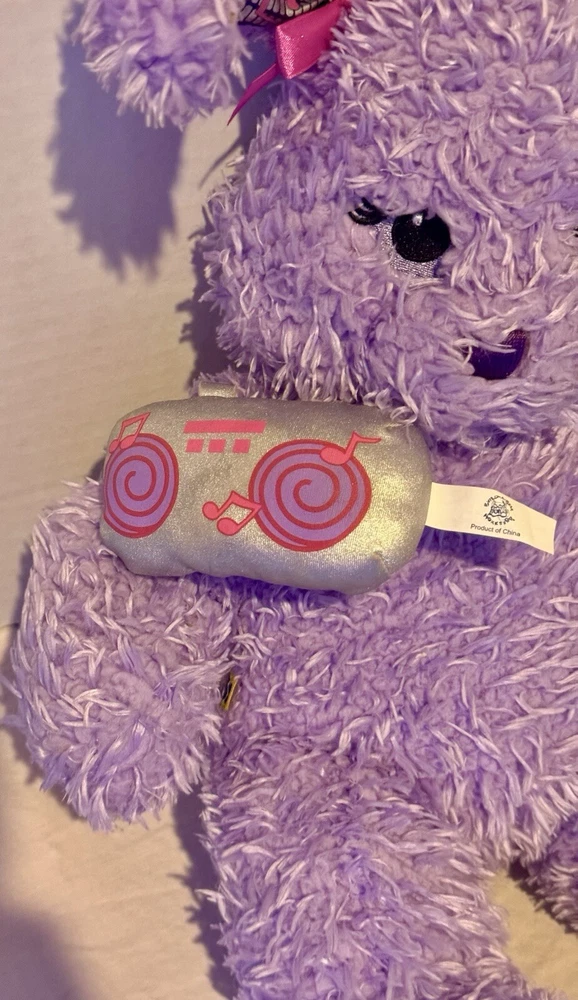 Build-a-Bear Jammin’ Music Bunny has poseable ears adorned with pink bows. 16 inch plush. Plush boom box is included. Retired edition. Preowned. In excellent condition. No rips or stains. Smoke free home.