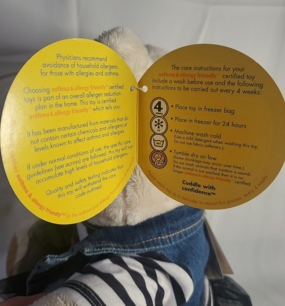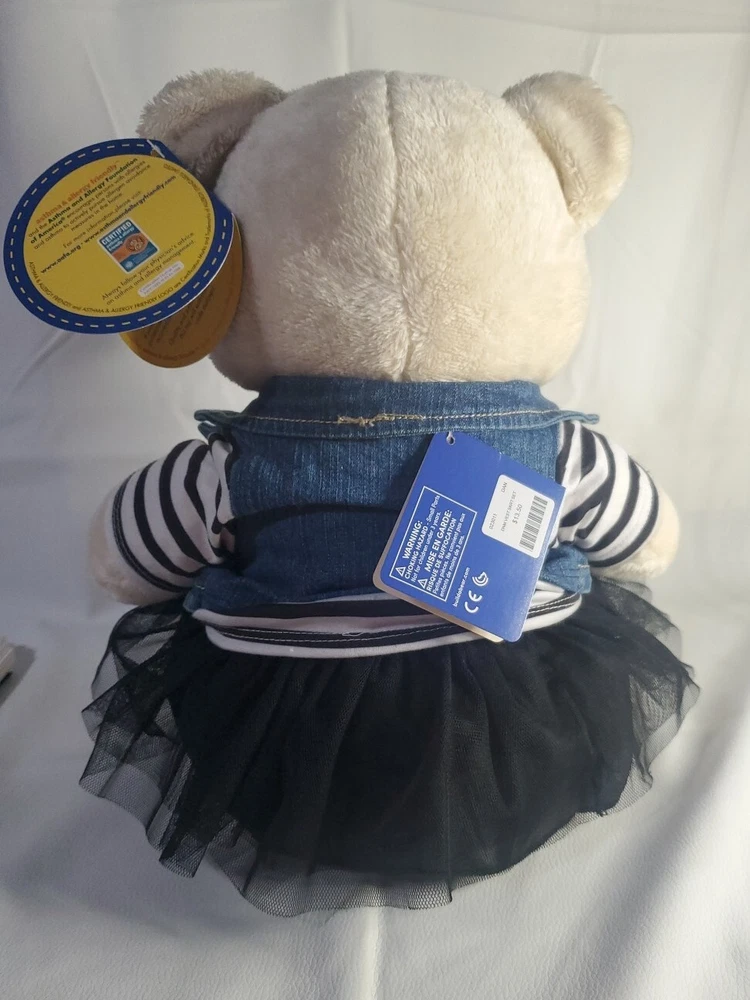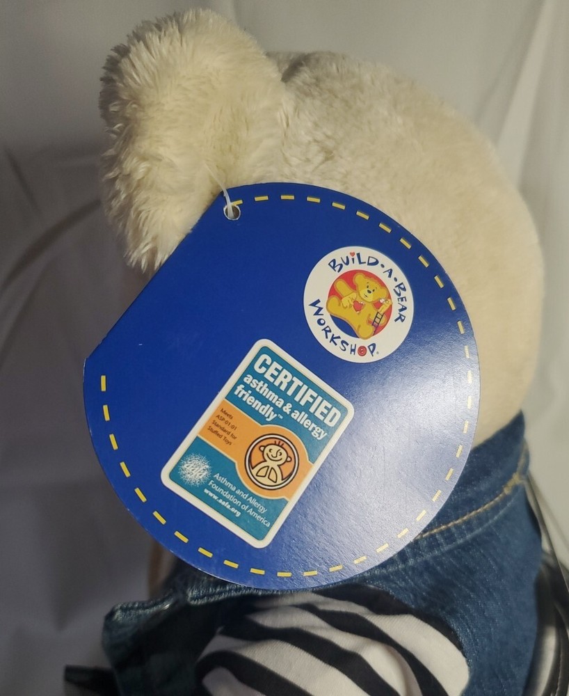 This adorable Build-A-Bear Workshop Velvet Hugs bear is the perfect addition to your stuffed animal collection. With its soft brown fur and cute denim jacket and skirt outfit, this collector bear is sure to bring joy to anyone who sees it. Measuring 14 inches in length, this plush stuffed toy is made from all new materials and is suitable for ages 2 and up. This original, licensed reproduction bear from the Build A Bear franchise is perfect for all occasions and comes with the clothing items included. Whether you're a collector or just looking for a new stuffed animal friend, the Velvet Bear is sure to delight. Made in Vietnam with high-quality polyester fibers, this bear is sure to be a treasured item for years to come. Asthma & Allergy Friendly