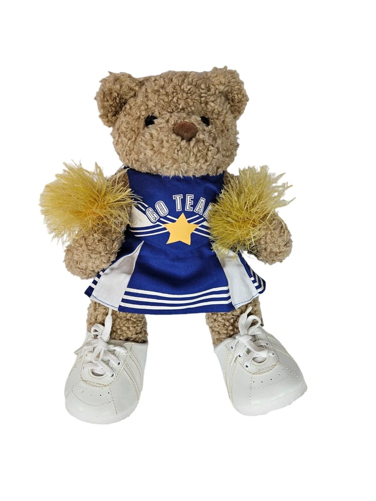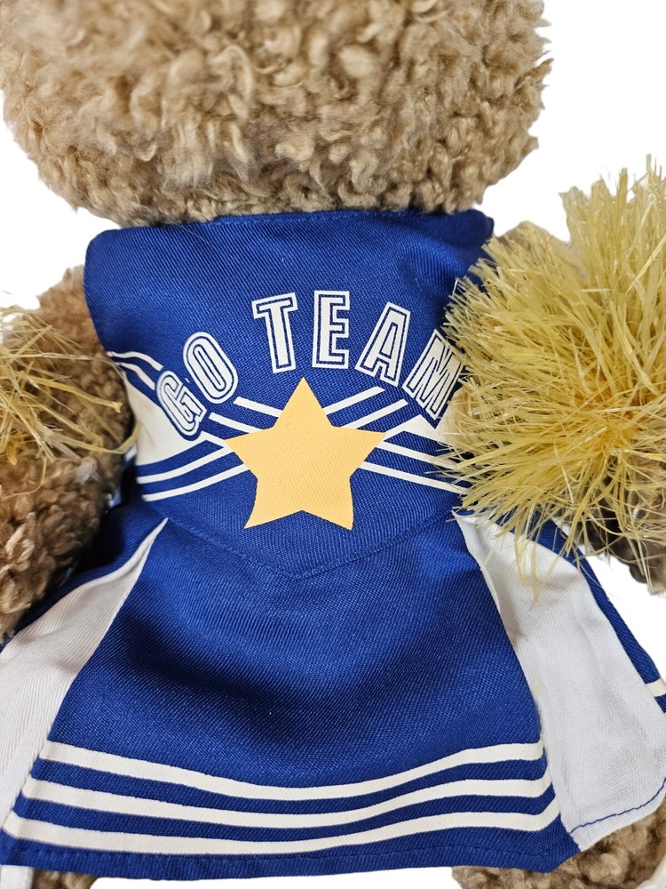 Build A Bear Fuzzy Teddy Bear Cheerleader Plush Stuffed Animal In excellent condition Build A Bear Fuzzy Teddy Bear Cheerleader Plush Stuffed Animal. Features adorable fuzzy teddy bear dressed as a cheerleader, white shoes, blue and white pleated skirt, blue top with "Go Team" and gold star, 2 yellow pom poms, Measurements height 14" width 10.5" This is a pre-owned item that may show signs of wear. In excellent condition, no flaws. 14 Day returns accepted under the following conditions: Item must be in the same condition as stated If item shows additional wear buyer will receive a partial refund Buyer pays all shipping costs Refund amount will be for the item price only Please contact me prior to starting a return