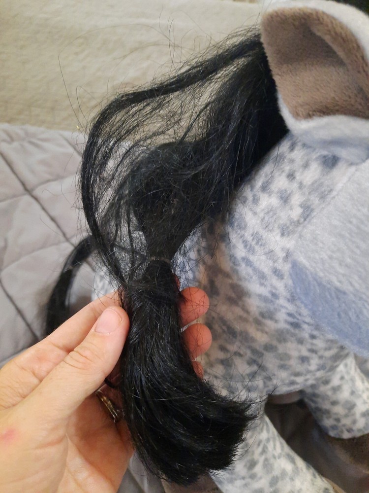 Build a Bear Horses & Hearts Club Appaloosa Gray Dappled Pony BAB Plush Toy. Minor stains on snout. Three plastic hair ties in mane and tail. No hang tag.