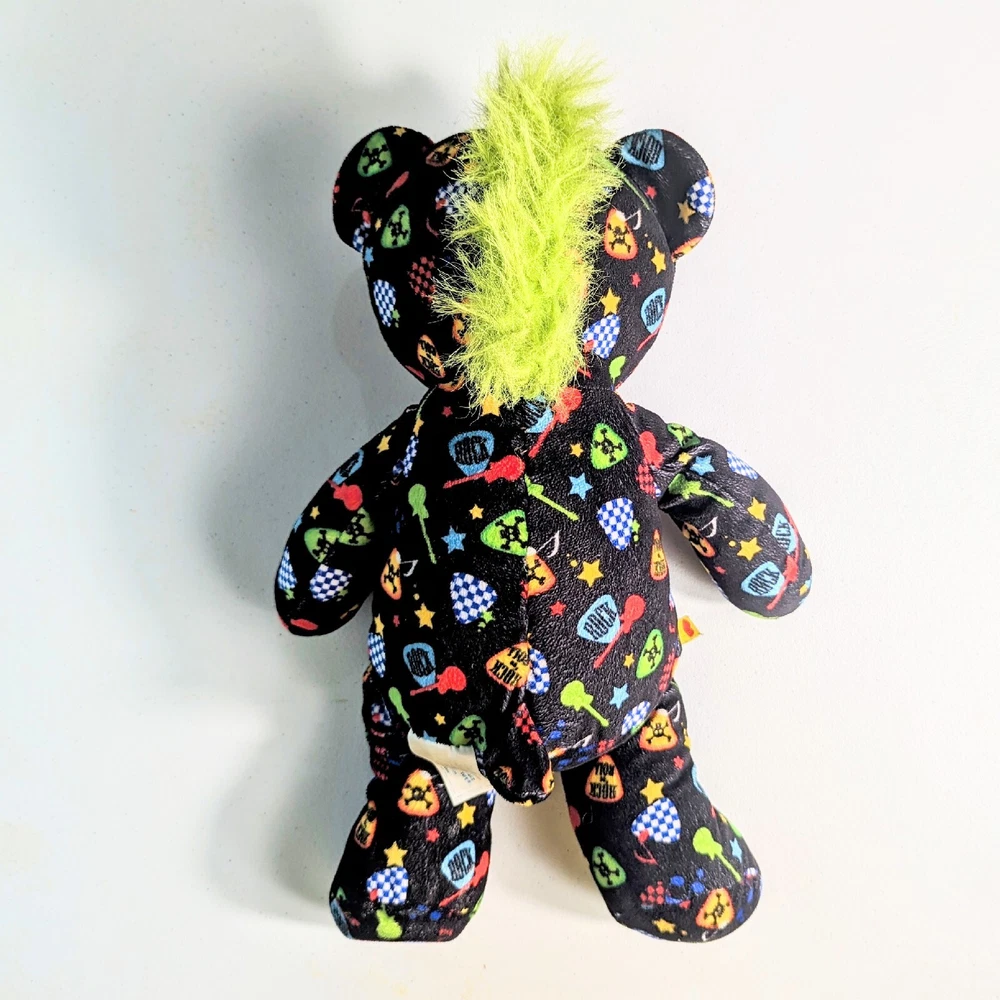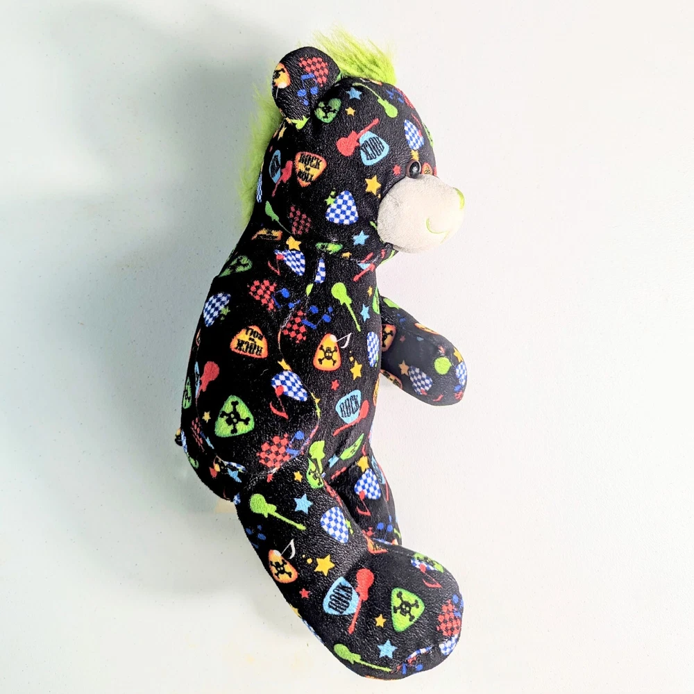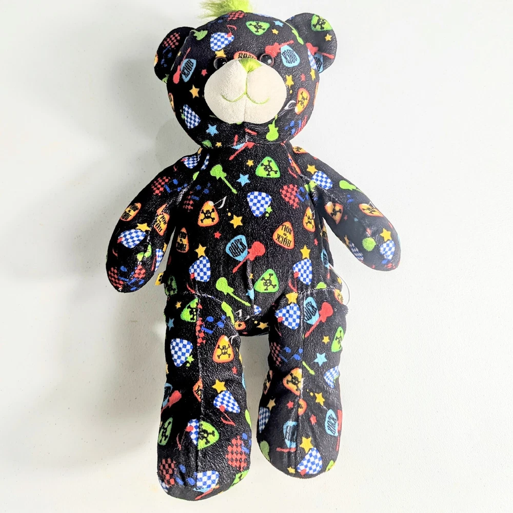 This Build-a-Bear Workshop stuffed animal is perfect for punk rock lovers! With its green mohawk and built-in speaker, this medium-sized bear is sure to be a hit at any birthday party. It was manufactured in China in 2010 and is recommended for children over the age of 3. The bear is in great condition and is ready for a new home. Its multicolor fur and character family make it a unique addition to any stuffed animal collection. Don't miss out on the opportunity to own this one-of-a-kind punk rock bear. Please view all images. Message with any questions.