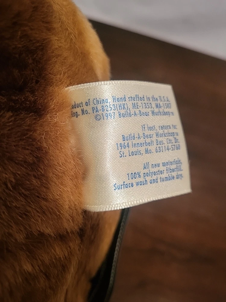 Size:10in.gtin13:Does not applyItems Included:JacketAnimal Species:BearModified Item:NoEye Color:BlackAntique:NoType:PlushHandmade:NoUPC:Does not applyVintage:YesOccasion:All OccasionBrand:Build-A-Bear WorkshopUnit of Sale:Single UnitColor:BrownRecommended Age Range:3+ yearsFeatures:VintageCountry/Region of Manufacture:ChinaYear Manufactured:1997Bear Color:BrownAnimal:BearCustom Bundle:NoNumber of Items:1Time Period Manufactured:1990-1999MPN:PL2