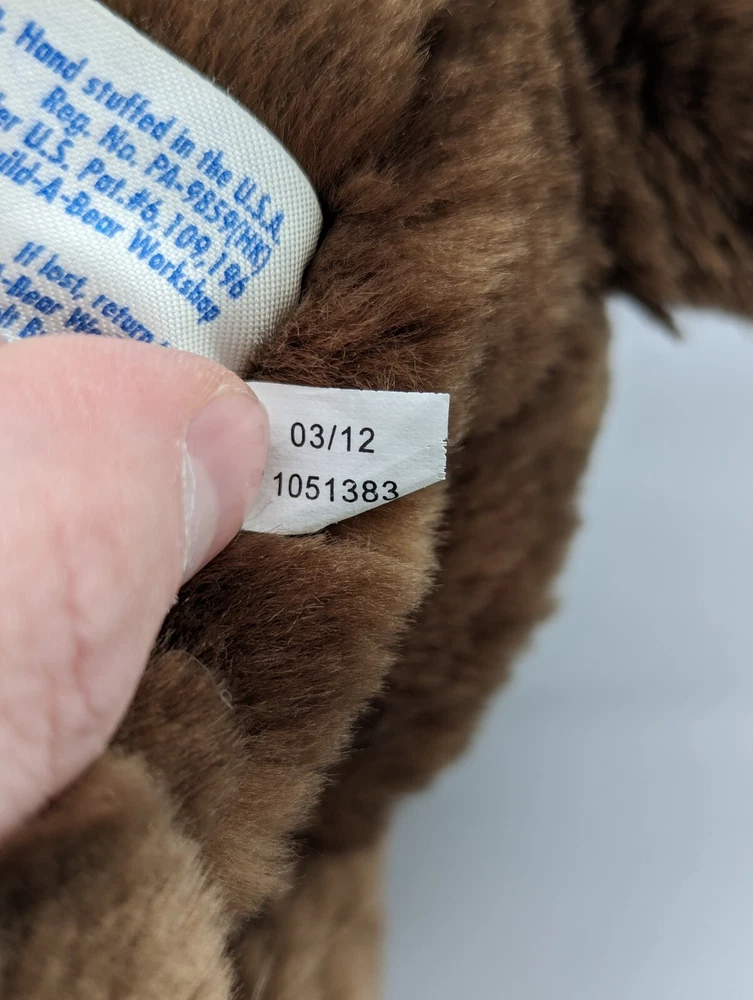Modified Item:NoEye Color:BrownSize:17in.Bear Color:BrownCharacter:n/aMaterial:PlushType:PlushAge Level:3-4 YearsOccasion:All OccasionAnimal Species:DogTime Period Manufactured:2010-2019Animal:DogBrand:Build-A-Bear WorkshopCustom Bundle:NoItems Included:n/aUPC:DOES NOT APPLYColor:BlackVintage:NoTheme:AnimalsRecommended Age Range:3+Collection:DogYear Manufactured:2012Franchise:Build-a-BearCountry/Region of Manufacture:ChinaOriginal/Licensed Reproduction:OriginalAntique:NoFeatures:With Clothes, TongueUnit of Sale:Single UnitBundle Description:n/agtin13:DOES NOT APPLY