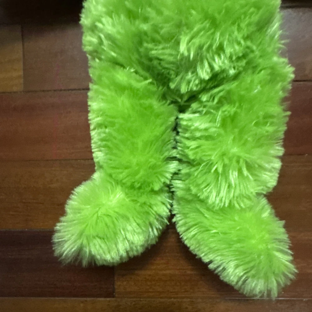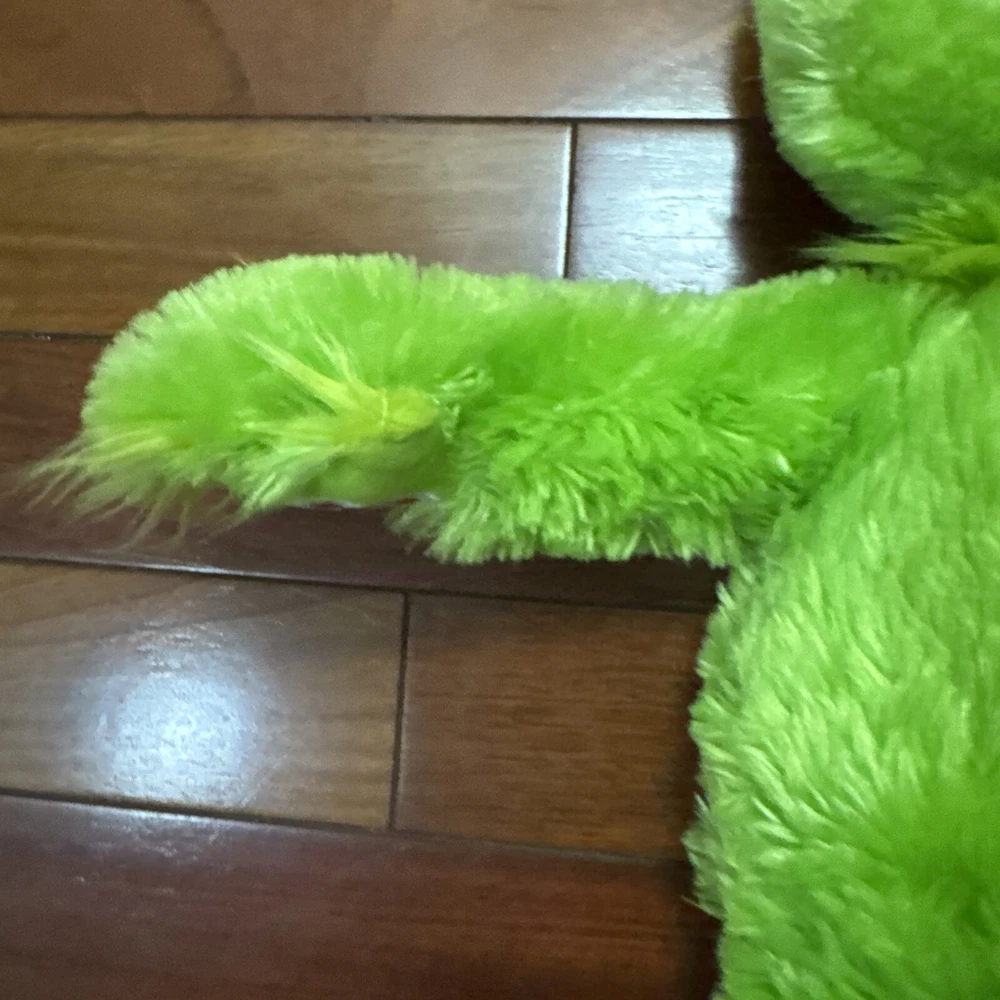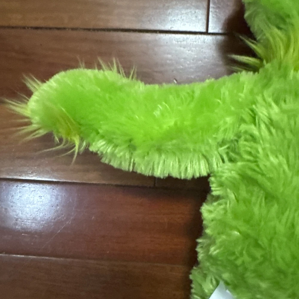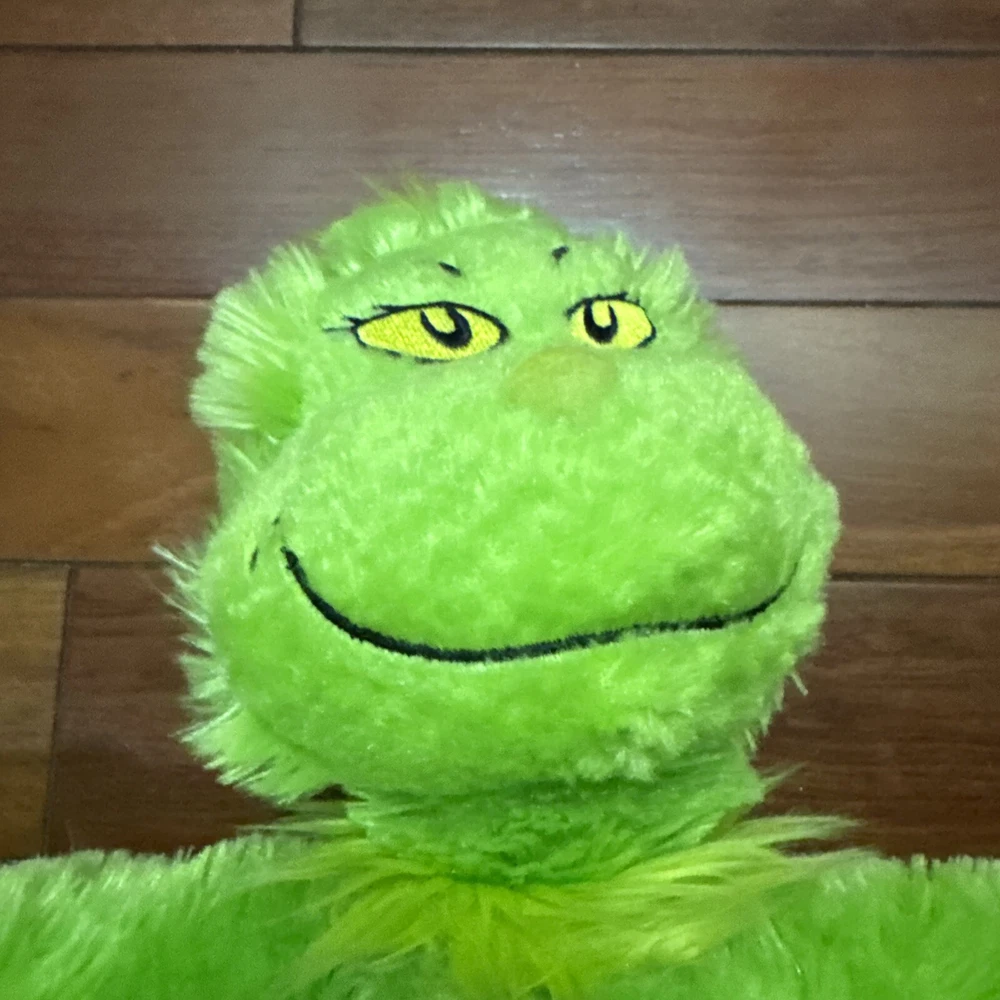 The product is a 20-inch plush stuffed animal of The Grinch from Dr. Seuss, released by Build-A-Bear Workshop in 2021. This green furry toy is designed for all ages and is an ideal gift for the Christmas season. The medium-sized Grinch plush is part of the Character Family collection and is a perfect addition for fans of the beloved Dr. Seuss stories.