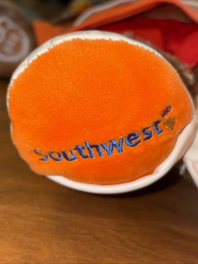 This Build-A-Bear Workshop plush bear is a must-have for any collector or fan of Southwest Airlines. Celebrating the airline's 50th anniversary, this brown bear is dressed in a flight attendant’s outfit complete with a shirt, scarf, and shorts. The bear's black eyes and plush material make it a cuddly and unique addition to any collection. This original was manufactured in 2016 and is in excellent condition. With a size of 15 inches, it is perfect for all occasions and would make a great gift for any bear enthusiast. Add this one-of-a-kind Southwest Anniversary Bear to your collection today!