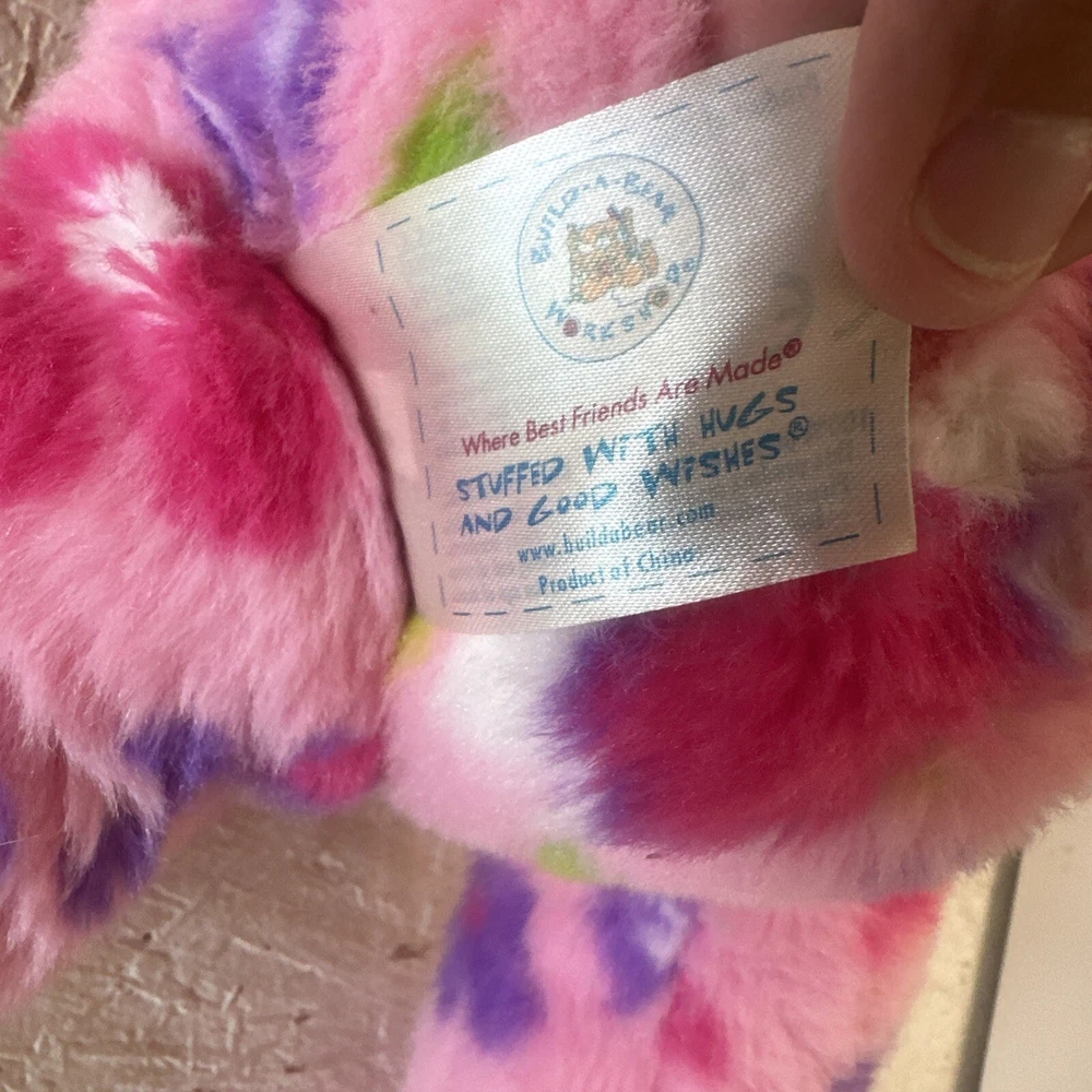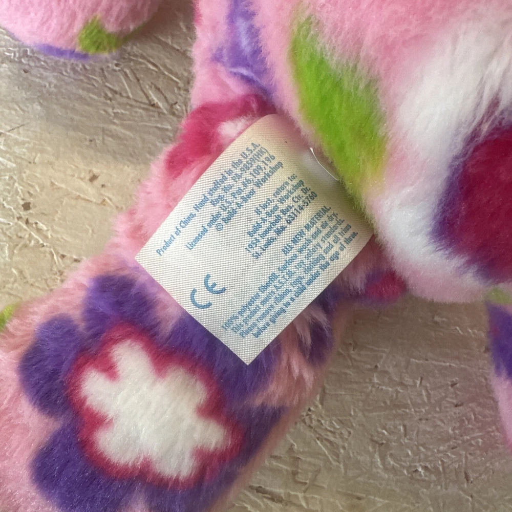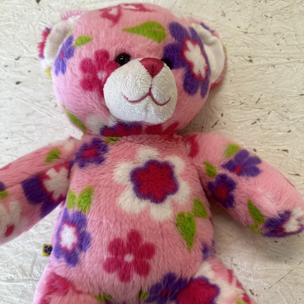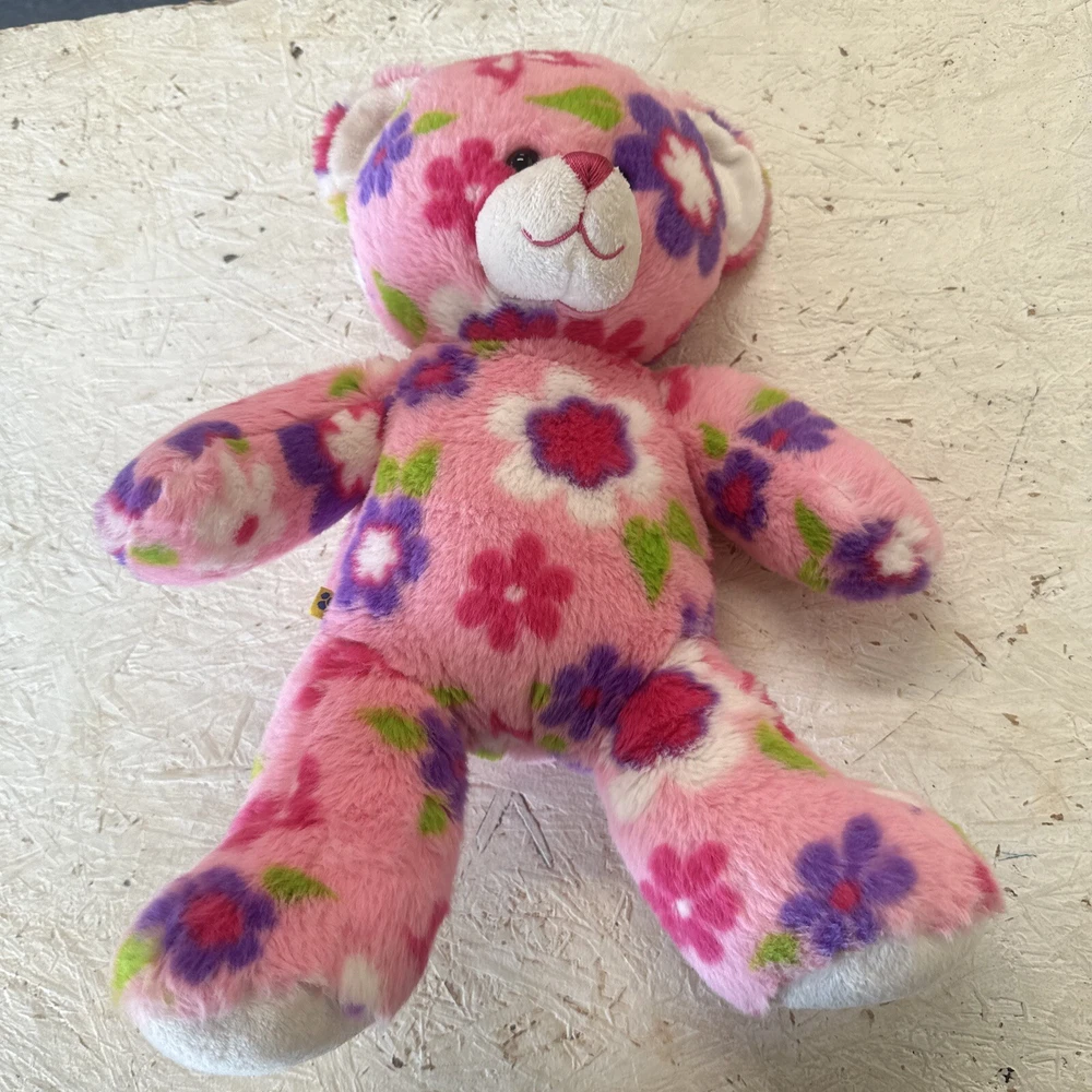 This 15-inch Build-A-Bear Workshop bear is a delightful addition to any collection. The Enchanted Garden Bear set features a pink bear with brown eyes and a multicolor design, along with a Flower Power Rabbit character. The bear is part of the Enchanted Garden collection and is an original, retired piece. It is perfect for all occasions and comes from China with no antique or vintage features. The bear is surface washable and has brown eyes. The item measures 17 inches in length, height, and width, and is an 11-inch bear set. This Build-A-Bear Workshop bear is perfect for anyone who loves floral themes and is looking for a unique addition to their collection.