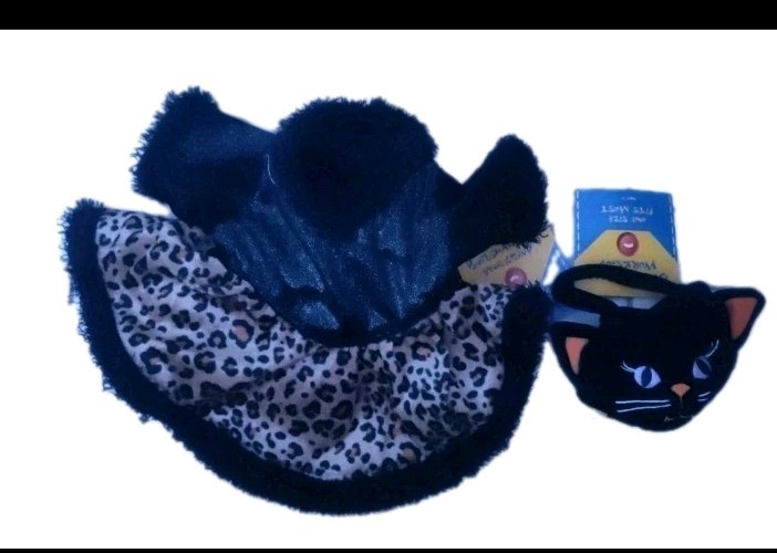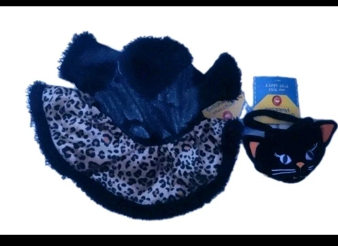 UPC:N/AAnimal:CatOriginal/Licensed Reproduction:OriginalPackaging:Without PackagingCharacter:N/AAntique:NoItems Included:CostumeHandmade:NoRecommended Age Range:3+Theme:HalloweenBrand:Build-A-Bear WorkshopSize:12-15gtin13:N/AType:ClothingAnimal Species:N/AMaterial:ClothArtist:n/aColor:BlackCountry/Region of Manufacture:ChinaFranchise:Build-a-BearSigned:NoFeatures:RetiredPersonalize:NoBear Color:MulticolorVintage:YesNumber of Items:1Eye Color:N/aOccasion:Halloween