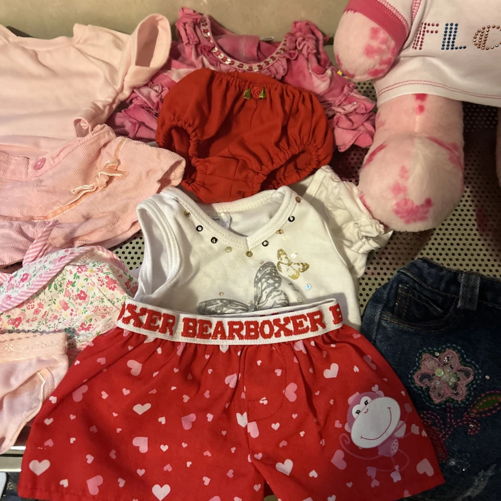 Build-A-Bear Workshop Pink Bear Plush Stuffed Teddy With 10 Pcs Of Clothing