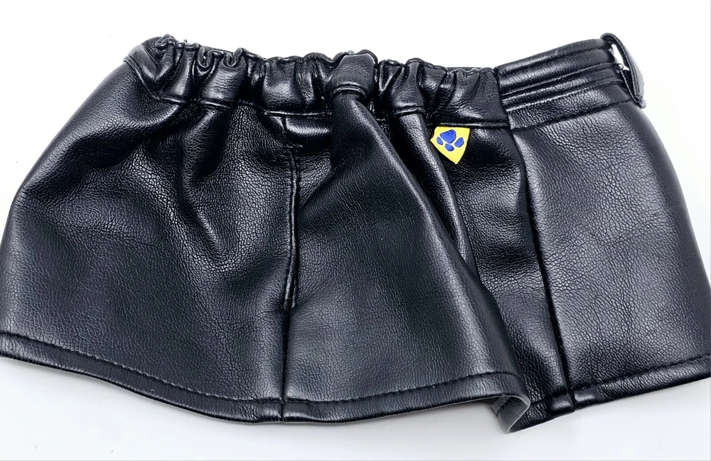 Type: doll For Doll Size: 14 in, 12 in Vintage: No Clothing Type: Skirt Item Length: 9" Set Includes: Skirt Item Height: 4.5" Material: faux leather Color: Black Brand: Build-A-Bear Workshop