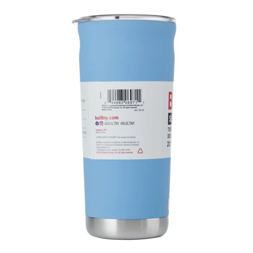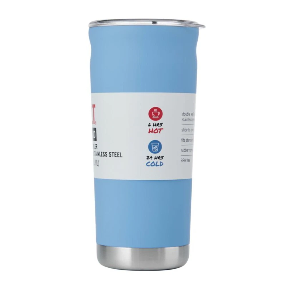 Enjoy all kinds of drinks with the 20 oz Torrent Insulated Tumbler in Sky Blue. The double-wall, vacuum-sealed construction keeps drinks cold for 24 hours, or hot for 6 hours, and prevents condensation from forming on the exterior. The lid features a large opening that accommodates straws, and the base features a nonslip rubber pad that protects surfaces from rings or scratches. This reusable, durable tumbler is made from food and lead safety tested, PVC-free, and BPA-free stainless steel that stands up to daily use. Plus, it fits in most standard-sized cup holders for easy on-the-go use. Holds up to 20-fluid ounces. Lid is top rack dishwasher safe; body is hand wash only. SMART DESIGN: lid features a large opening for straws; nonslip rubber pad on the bottom protects surfaces from rings or scratches DURABLE AND SAFE: food and lead safety tested, PVC-free, and BPA-free stainless steel stands up to daily use EASY CARE: lid is top rack dishwasher safe; body is hand wash recommended Fits in most standard car cup holders Torrent Double Wall Stainless Steel Insulated Tumbler 20 oz Magenta, Water Bottle, 5303562