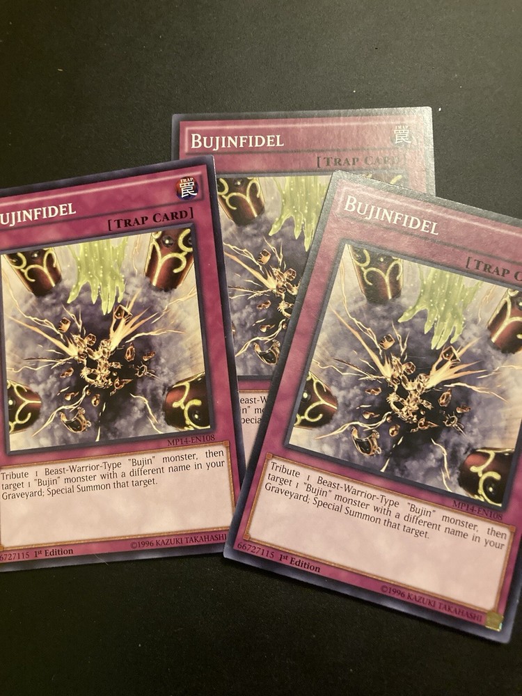 This rare and highly sought-after Bujinfidel card is a must-have for any serious Yu-Gi-Oh! TCG collector. With its stunning 2014 Mega-Tins Mega Pack design and 1st Edition status, this trap card is sure to be a showpiece in any collection. Featuring the character Yugioh and a rarity of Common / Short Print, this English language card was manufactured by Konami in 2014 and is suitable for ages 6+. Its card number is MP14-EN108, and it has a regular finish. Don't miss your chance to add this unique card to your collection!