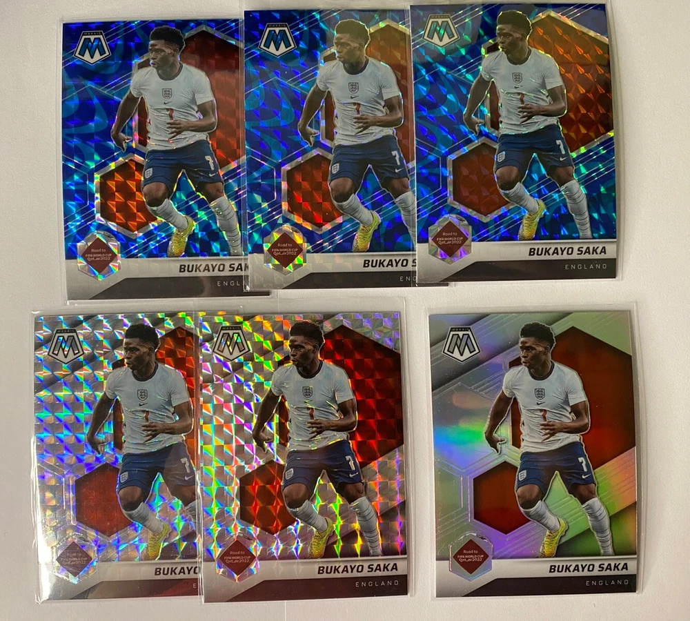 Bukayo Saka LOT 17x Mosaic Insert Topps Optic Holo Mosaic Blue Silver Prizm. Condition is Used. Shipped with eBay Standard Envelope for eligible items up to $20.