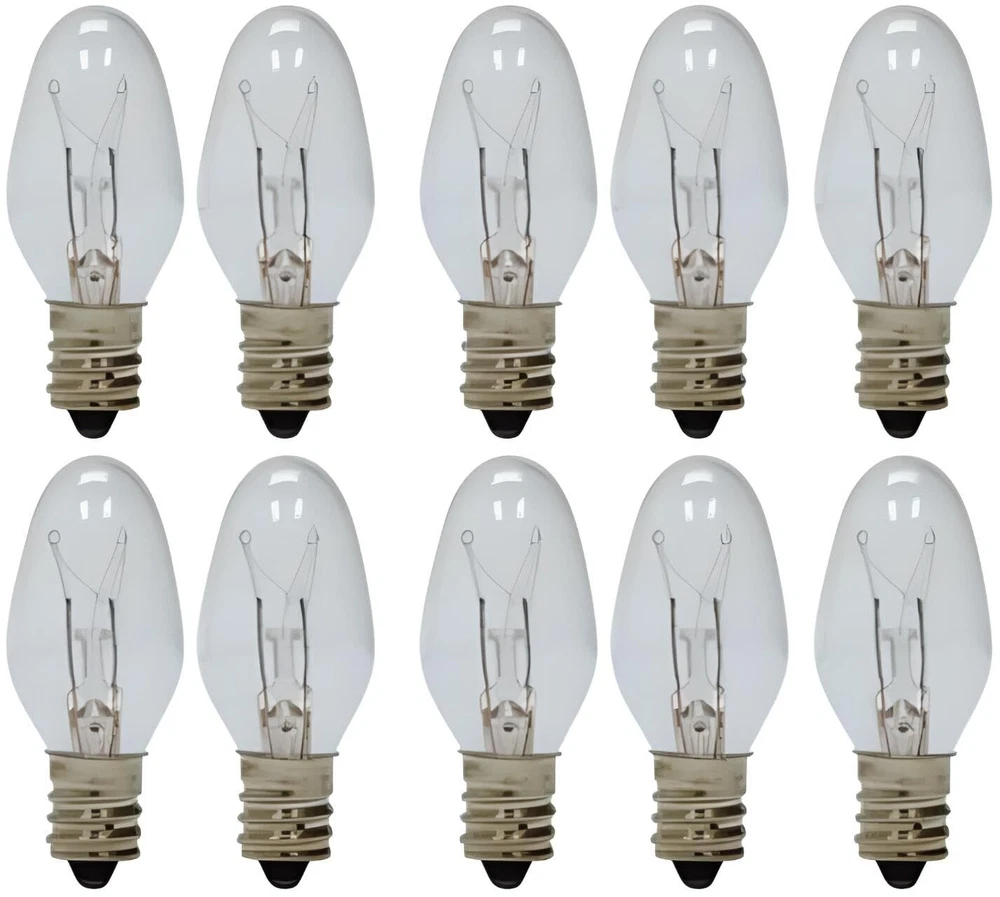 These bulbs feature a 7-support filament, meaning that the filament (the wire that glows) is held in place by 7 support 'arms' inside the glass. Combined with the coiled filament construction, this makes for superior life and even light/heat distribution when compared to cheaper bulbs that have fewer supports or shorter filaments, making them the particularly useful for use in wax warmers. These bulbs are the correct replacement for the 15 Watt bulbs that are used in Scentsy-brand and Better Home & Garden plug-in wax warmers The bulbs have the 12mm (roughly 1/2 inch) screw base, also known as E12 or Candelabra They are night-light bulb shaped, as pictured. With an extra long light life of over 3,500 hours, light up your favorite items day and night and be worry free of the bulbs overheating or going out. Assured Quality: Backed by a 1-year OCS warranty, this product undergoes meticulous examination to ensure unmatched performance and reliability. Trust for genuine, direct sourcing, and secure packaging, delivering a product that meets the highest standards of quality and customer satisfaction.