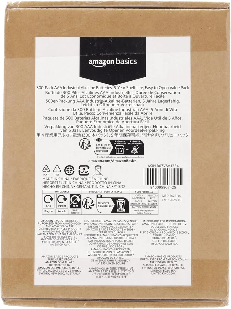 Bulk 300-Pack AAA Alkaline Batteries with 5-Year Shelf Life for Devices ‹ › ‹ › ‹ › ‹ › ‹ › ‹ › ‹ › ‹ › ‹ › ‹ › ‹ › Bulk 300-Pack AAA Alkaline Batteries Reliable Power Source: A 300-pack of 1.5V AAA alkaline batteries, providing long-lasting power for a wide range of electronic and handheld devices. Features: 300-pack of 1.5V AAA alkaline batteries for extensive use. Long-lasting power suitable for various devices. Bulk packaging designed for industrial or high-volume needs. Extended 5-year shelf life for dependable performance. Eco-friendly: Mercury and cadmium-free. Single-use design; not rechargeable. Benefits: Convenient bulk quantity ensures you always have a reliable power source at hand. Ideal for home, office, or industrial environments. Confidence in long-term performance with a 5-year shelf life. Environmentally responsible choice with no harmful materials. Why choose our Bulk 300-Pack AAA Alkaline Batteries? Experience the freedom of reliable power with our Bulk 300-Pack AAA Alkaline Batteries. Designed for a multitude of devices, from remote controls to toys and more, these batteries are your go-to solution for consistent energy. With a generous 5-year shelf life, you won't need to worry about running out any time soon. Choose an eco-friendly option that respects our planet while delivering the performance you demand. Enjoy peace of mind knowing these batteries are free from harmful substances. Stock up today and ensure you are always charged and ready for what life brings! Shipping Free & Fast Shipping - We offer free shipping to most of the USA with a normal delivery time of 3-7 days. However, due to the current situation, additional delivery time (up to 3 weeks) may be required for some items. Alternative Carriers - We may use alternative carriers (e.g. USPS, FedEx, UPS, etc.) to ensure your package arrives safely and on time. Due to the use of multiple carriers, we are unable to provide a tracking number automatically. Handling Time - Orders are processed and shipped within 1-2 business days of receiving cleared payment. Shipping Restrictions - Shipping to Alaska, Hawaii, Puerto Rico, Guam, and other US territories may incur shipping charges or delivery restrictions. Please contact us before ordering, or your order can be refunded/cancelled. State Restrictions - There may be restrictions based on your state of purchase. For example, certain items may not be shipped to California due to state regulations. Contact for Tracking Updates - If you require tracking updates or have any concerns about the delivery of your order, please feel free to contact us, and we will be happy to assist you. Return Please see our eBay Return Policy. Thank you. Payment We accept all major credit cards, PayPal, and Apple Pay for your convenience. Your payment information is secure and encrypted to ensure a safe and seamless transaction. Please complete your payment within 3 days of purchase to avoid any delays in shipping. Feedback Your feedback is extremely important to us. We strive to provide the best products and customer service possible. If you are satisfied with your purchase, please take a moment to leave us a positive review. If you have any concerns or issues with your order, please contact us before leaving negative feedback. We are committed to resolving any problems and ensuring your satisfaction. Contact Us If you have any questions or concerns, please feel free to reach out to our customer support team. You can contact us through the eBay messaging system. We are available Monday to Friday, 9:00 am to 5:00 pm EST, and we will do our best to respond to your inquiry within 24 hours. Thank you for supporting our small family business! UPC: Not Set Unit Quantity: 300 Expiration Date: 5 years Application: High Drain Devices,Low Drain Devices Brand: Unbranded Type: AAA Battery Size: 1.5 V Chemical Composition: Alkaline Voltage: 1.5 V Amp Hours: Not Set MPN: Not Set Unit Type: lb Country/Region of Manufacture: Not Set Manufacturer Warranty: 5 Years
