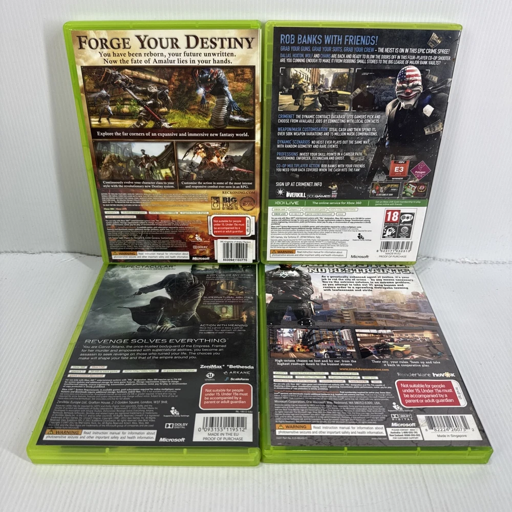 Dive into a diverse collection of gaming experiences with this bulk bundle of 20 Microsoft Xbox 360 titles. Featuring an array of genres from action and adventure to fighting and fantasy, there's something for every gamer. The bundle includes well-known games such as 'Injustice: Gods Among Us', 'Halo 4', and 'LEGO Marvel Superheroes', ensuring a variety of gameplay styles and stories. Each game comes complete with a manual, offering both solo and multiplayer capabilities, and supports online playability. These PAL region games have been manufactured in Singapore and are rated MA 15+, suitable for mature audiences. Whether you're looking to expand your gaming library or just stepping into the world of console gaming, this bundle is a fantastic pick. Discs have scratches Manuals included PAL Unknown if codes work Case & manuals have marks & stickers Selling as is
