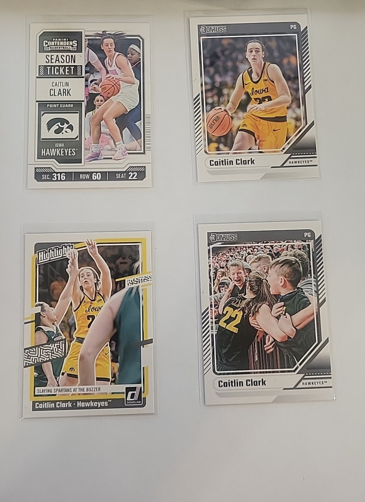 Elevate your basketball card collection with this bulk lot of 20 Caitlin Clark cards. Each card captures the essence of the talented player, offering fans and collectors a tangible piece of her career. The lot provides a fantastic opportunity to acquire multiple cards at a great value, making it an essential addition for enthusiasts looking to expand their assortment. These cards are fresh pulls from various sets and are not autographed, ensuring their design and quality are focused on the athlete's representation and achievements. Whether you're a dedicated follower of Caitlin Clark's career or a connoisseur of sports trading cards, this set is an excellent way to commemorate her impact on the basketball court. Cards shown are for example and may not be the set sent. for display only.
