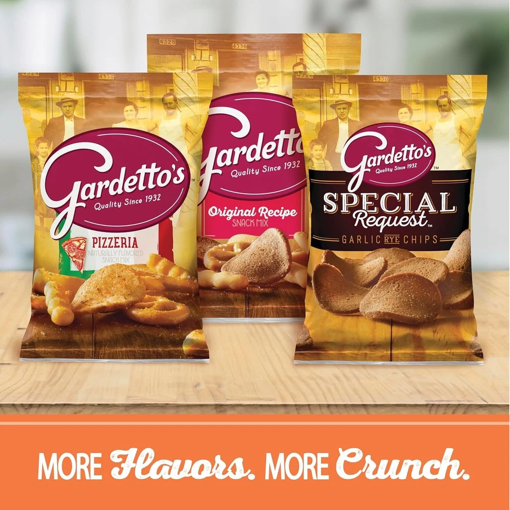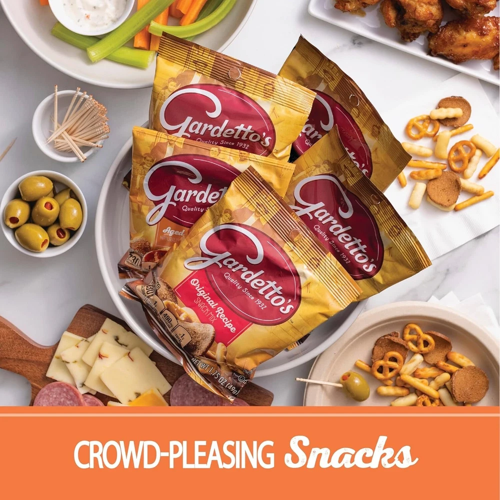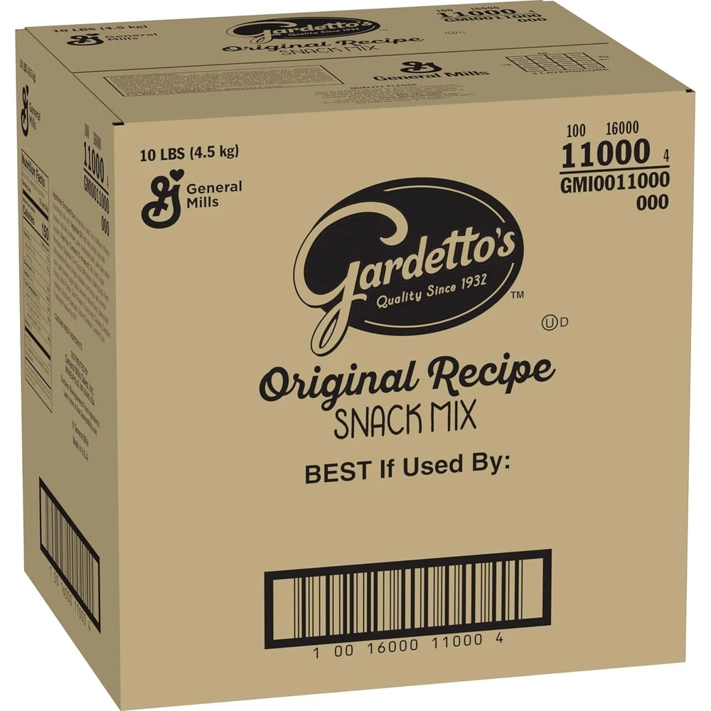 Product: Gardetto's Snack Mix gtin13: Does not apply Package Dimensions: 12 X 12 X 10 Inches; 10 Pounds Item Weight: 10 lb Size: 160 Ounce (pack Of 1) Expiration Date: Gardetto's Snack Mix Brand: Unbranded Product Name: Gardetto's Snack Mix Type: Snack Mix Flavor Name: Original Number in Pack: 1 Food Aisle: Pantry Course: Snacks & Appetisers UPC: Does not apply Calories per 100 g/mL: Gardetto's Snack Mix Style: Snack Mix