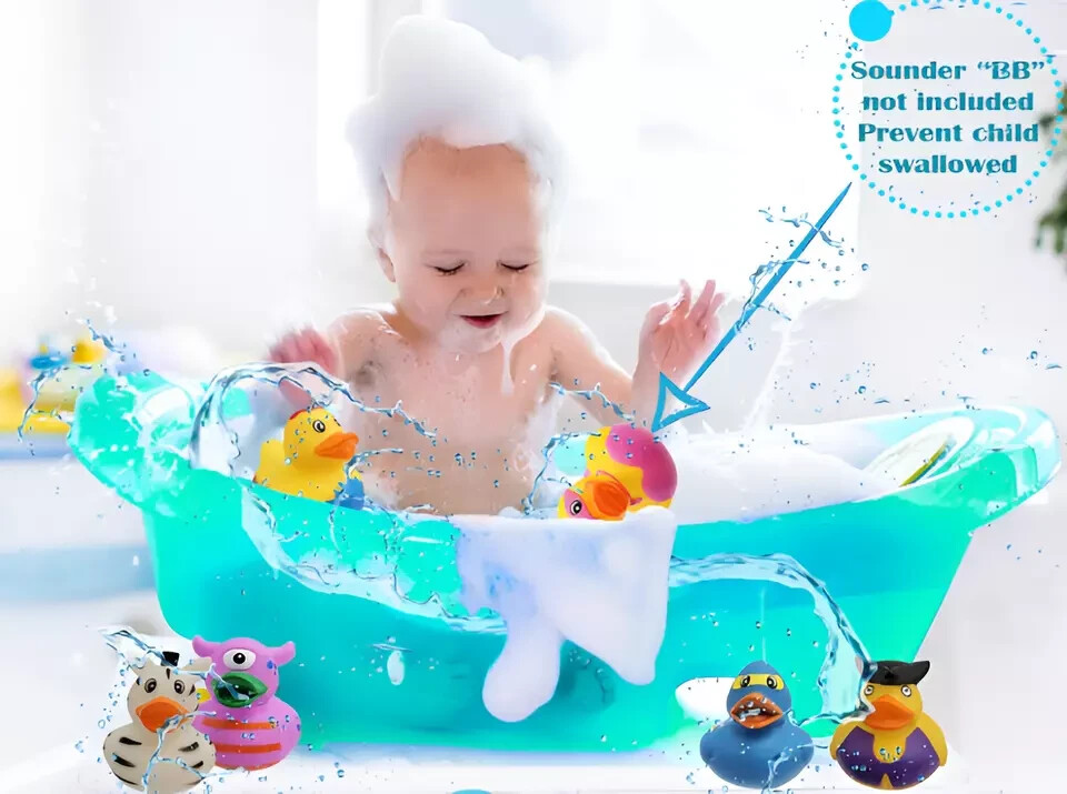 Rubber Ducks in Bulk,Assortment Duckies for Jeep Ducking Floater Duck Bath Toys Product Description Chochkees Assortment Rubber Duck Toy Duckies For Kids, Bath Birthday Gifts Baby Showers Classroom Summer Beach and Pool Activity, 2" Looking for a fun outdoor game for kids that will have them engaged in total fun? The Assortment Rubber Duck Toy Duckies are great for playing outdoors on sunny days and will be a hit with children, especially preschoolers, during birthday parties, school carnivals, or pool parties. Your kids will love bath-time from now on and will be entertained for hours! The cute Classic ducks are designed in Multi-colors which make the Duckies the perfect gift and decoration for any kids’ party. Adds Fun and Atmosphere to your party that will leave good memories to all your guests! They are wonderful gifts for Birthday Parties, Carnival Prizes, Classroom Rewards, Goodie bag Fillers, and much more! The Rubber Duck Toy Assortment features a variety of different Rubber Toy Duckies! They are great for playing with children, especially preschoolers, during birthday parties, school carnivals, or parties. Your kids will be entertained with amazing imaginative fun for hours. Keep the kids smiling and chuckling with these assorted rubber duckies The baby bath toys make the perfect gift and decoration for any kids’ party. Adds Fun and Atmosphere to your party that will leave good memories for all your guests! They are wonderful Party Favors and Floating Baby Gifts for Birthday Parties, Carnival Prizes, Stocking stuffers, Pool Toys, Classroom Rewards, Goodie bag Fillers, and much more The Multicolor Baby Bath Toys Characters are 2” and made from Vinyl which is long-lasting and safe for children! Your kids will love bath time from now on Our Rubber Ducky Baby Toys come in a 50-Pack and 100-Pack! Great For sharing with friends and family. They’re perfect for fun in the pool, bathtub, or lake, can be used as carnival duckies for all those fun games, and also work as fun decorations to bring any kiddie party to life. Free & Fast Shiping