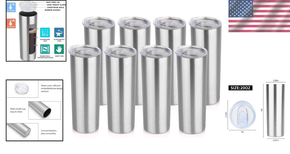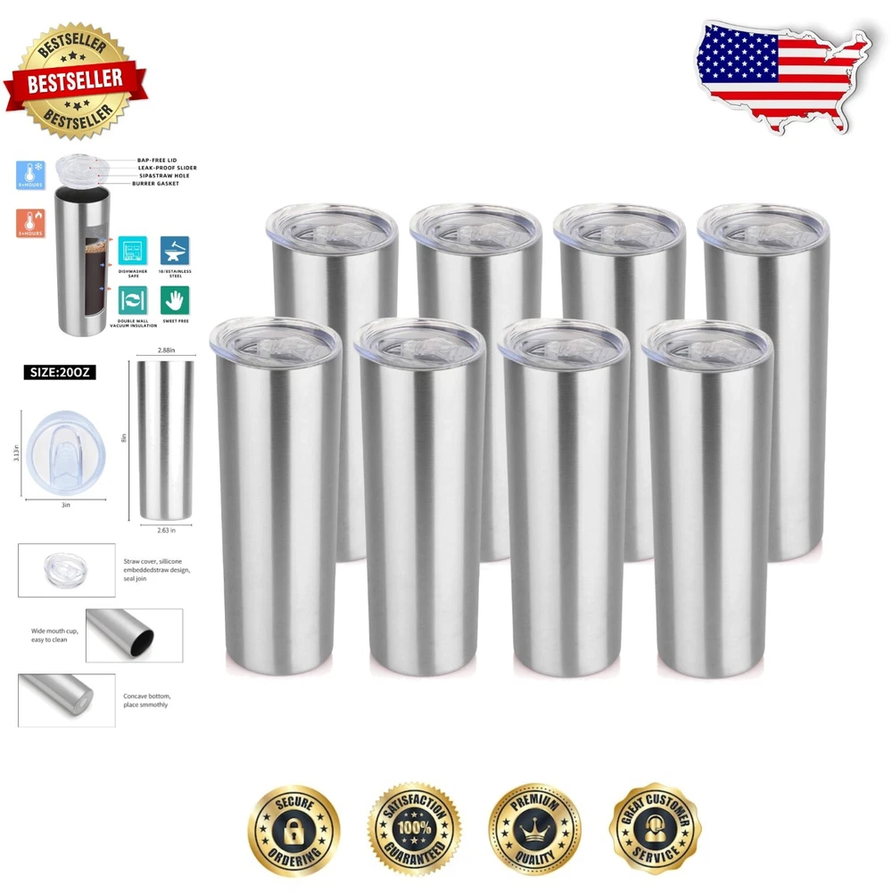 Bulk Set of 20 oz Stainless Steel Tumblers - Perfect for Hot & Cold Drinks ‹ › ‹ › ‹ › ‹ › ‹ › ‹ › ‹ › ‹ › Bulk Set of 20 oz Stainless Steel Tumblers Perfect for Hot & Cold Drinks Key Features: DOUBLE WALL VACUUM INSULATION: Enjoy your beverages at the ideal temperature. Keep ice cold for up to 12 hours and hot drinks warm for up to 6 hours. LIFETIME DURABILITY: Crafted from 304 food-grade stainless steel, BPA-free, ensuring a healthier choice over plastic. The insulated design prevents sweating for a mess-free experience. DESIGNED FOR EVERY OCCASION: Perfect for outdoor adventures, road trips, or as a travel cup for your daily commute. Whether at home or on the go, enjoy your favorite drinks anytime. EASY TO CLEAN: Hand wash recommended. Features an electro-polished interior that won't retain flavors or impart a metallic aftertaste. OUTSTANDING CUSTOMER SERVICE: Your satisfaction is our top priority. Contact us with any concerns and receive prompt support within 24 hours. Why Choose Our 20 oz Stainless Steel Tumblers? Experience the ultimate in beverage enjoyment with our Bulk Set of 20 oz Stainless Steel Tumblers. Say goodbye to sweaty cups and hello to a durable, stylish solution for all your drink needs. Made with premium materials, these tumblers ensure your drinks stay at the perfect temperature, whether you’re savoring a hot coffee on a chilly morning or refreshing iced tea on a sunny afternoon. With a sleek powder-coated finish, these tumblers not only look elegant but also fit comfortably in your hand, thanks to their anti-slip design. Safe and hygienic, choose our stainless steel tumblers for your everyday hydration needs, and elevate your sipping experience. Don't miss the opportunity to enhance your drinkware collection – order your Bulk Set of 20 oz Stainless Steel Tumblers today! Shipping Free & Fast Shipping - We offer free shipping to most of the USA with a normal delivery time of 3-7 days. However, due to the current situation, additional delivery time (up to 3 weeks) may be required for some items. Alternative Carriers - We may use alternative carriers (e.g. USPS, FedEx, UPS, etc.) to ensure your package arrives safely and on time. Due to the use of multiple carriers, we are unable to provide a tracking number automatically. Handling Time - Orders are processed and shipped within 1-2 business days of receiving cleared payment. Shipping Restrictions - Shipping to Alaska, Hawaii, Puerto Rico, Guam, and other US territories may incur shipping charges or delivery restrictions. Please contact us before ordering, or your order can be refunded/cancelled. State Restrictions - There may be restrictions based on your state of purchase. For example, certain items may not be shipped to California due to state regulations. Contact for Tracking Updates - If you require tracking updates or have any concerns about the delivery of your order, please feel free to contact us, and we will be happy to assist you. Return 30-Day Hassle-Free Returns - We want you to be completely satisfied with your purchase. If you are not, you can return the item within 30 days of receiving it for a full refund or exchange. Easy Return Process - To start a return, simply contact us and we will provide you with a prepaid return shipping label and detailed instructions. Restocking Fee - There are no restocking fees for returns. However, the buyer is responsible for return shipping costs if the return is not due to a seller's error. Refund Processing Time - Refunds will be processed within 5 business days of receiving the returned item in its original condition. Payment We accept all major credit cards, PayPal, and Apple Pay for your convenience. Your payment information is secure and encrypted to ensure a safe and seamless transaction. Please complete your payment within 3 days of purchase to avoid any delays in shipping. Feedback Your feedback is extremely important to us. We strive to provide the best products and customer service possible. If you are satisfied with your purchase, please take a moment to leave us a positive review. If you have any concerns or issues with your order, please contact us before leaving negative feedback. We are committed to resolving any problems and ensuring your satisfaction. Contact Us If you have any questions or concerns, please feel free to reach out to our customer support team. You can contact us through the eBay messaging system. We are available Monday to Friday, 9:00 am to 5:00 pm EST, and we will do our best to respond to your inquiry within 24 hours. Buy it now and enjoy a pleasant shopping experience! UPC: Not Set Unit Quantity: 1 Material: Stainless Steel,BPA-Free Theme: Food,travel Features: Insulated,With Lid Character: Not Set Department: Adults,Womens Type: Insulated Tumbler Brand: Unbranded Color: Stainless Steel Character Family: Not Set Pattern: Solid Beverage Type: Hot or Cold Capacity: 20 oz Country/Region of Manufacture: Not Set MPN: Not Set Lid Type: Drink Through Item Width: Not Set Item Height: Not Set Keeps Hot For: 6 hrs Keeps Cold For: 12 hrs Number of Items in Set: Eight-Piece Item Weight: 1.25 lb Manufacturer Warranty: Not Set Model: Not Set Unit Type: lb Care Instructions: Hand Wash Only Personalize: Not Set