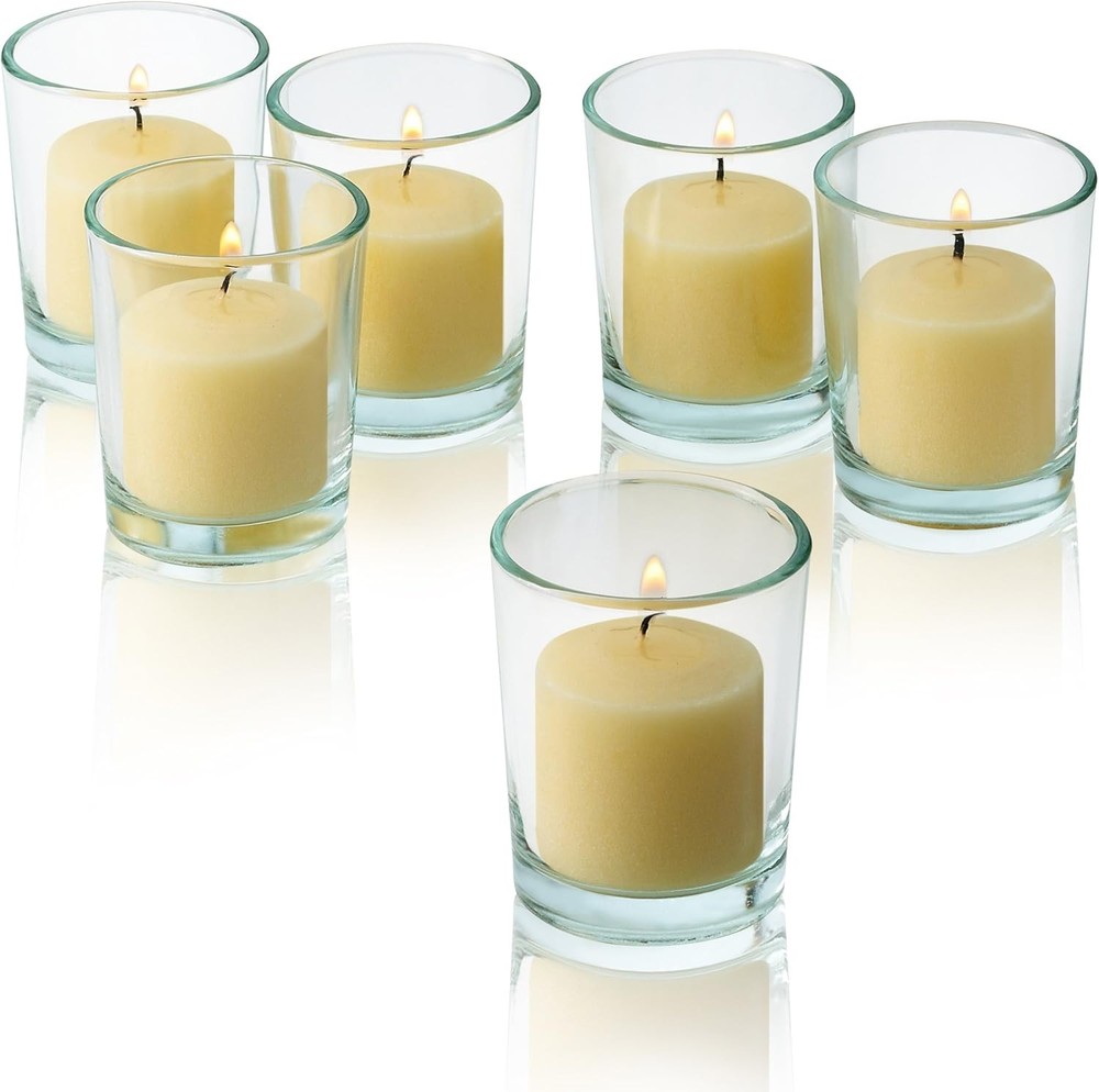 French Vanilla Scented Candles - Bulk Set of 72 Votive Product Details Brand: Light In The Dark Color: French Vanilla Product Dimensions: 1.5"W x 1.5"H Item Weight: 4.81 Pounds Number of Items: 72 Scent: Scented Are Batteries Included: No Indoor/Outdoor Usage: Indoor Specific Uses For Product: Ambience Shape: Round Material: Wax Container Material: Glass Occasion: Home Seasons: All Season Special Feature: Scented Style: Scented Wick Quantity: 1 Theme: Home Decor, Ambiance Package Information: Can Unit Count: 72 Count Embellishment: Dried Flower Candle Type: Votive Candle Item Diameter: 1.5 Inches Manufacturer: Light In The Dark Item Weight: 4.81 pounds Item model number: LITD-V1072-FRNGVNILA Is Discontinued By Manufacturer: No Batteries required: No Bulk pack of 72 ivory votive candles with pleasant french vanilla scent Votives are 1.5 Inch in diameter x 1.25 Inch in height. Candles fit in most standard votive candle holders and lanterns Made in the USA with quality wax from core to overdip so candles maintain color and scent throughout burning Fill your home with the fresh aroma of french vanilla, scented candles have a 10 hour burn time keeping your space smelling sweet all day long Perfect for home, spas, parties and any occasion needing some extra ambiance Set of 72 French Vanilla Scented Votive Candles , Very Popular, Classic, Clean, Set of 72 French Vanilla Scented Votive Candles . Made in the USA. This Votive Candles with 10 Hour burn time each, Scented Votive Candles are very popular for home use, whether it may be arranged around the tub or jacuzzi, or at patio and pool gatherings , These same candles are purchased for use in some of the finest stores in the USA. The candles are 1.5 Inch in diameter and 1.1/4 Inch tall. Made In the USA, candles. They are professionally packed to arrive quickly and undamaged