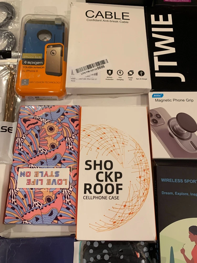 This bulk lot of cell phone accessories is a mixed bag of cables, chargers, cases, screen protectors, and a variety of other accessories that could be used with a cell phone. All items are new and in their original packaging -- ready for resale by a reseller or dealer. These items range in retail value from $7.95 - 29.95. These items will work / fit a wide variety of phones: Samsung, Android, Apple and many more; they are designed to work with/fit recent phone releases with the past couple years, many for just 2024 models only. All our bulk wholesale lots are new or like new items, unless otherwise described. These lots are designed to combine numerous items together for a discounted wholesale price, so that the retail value is at least double+++ the Buy It Now price. These bulk wholesale lots are ideal for resellers and dealers; or they can make a great long-term supply of consumable products or to give as a fun Mystery Gift or Secret Santa gift. Due to the nature of these bulk wholesale lots, some items may have some minor packaging damage, minor surface flaws, or they may be in perfect condition. These lots are not returnable or refundable, so please read the description and view the photos carefully in detail before ordering.