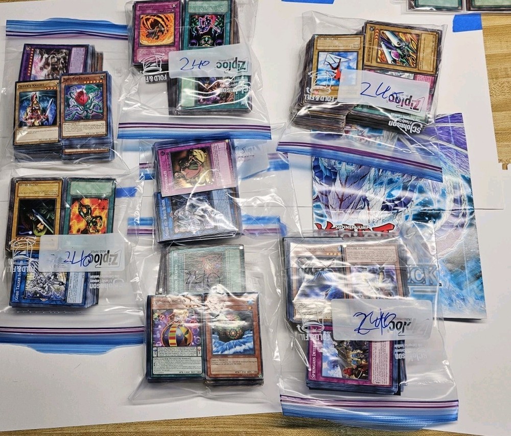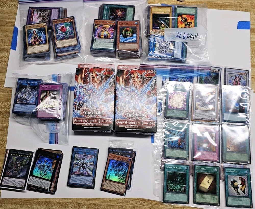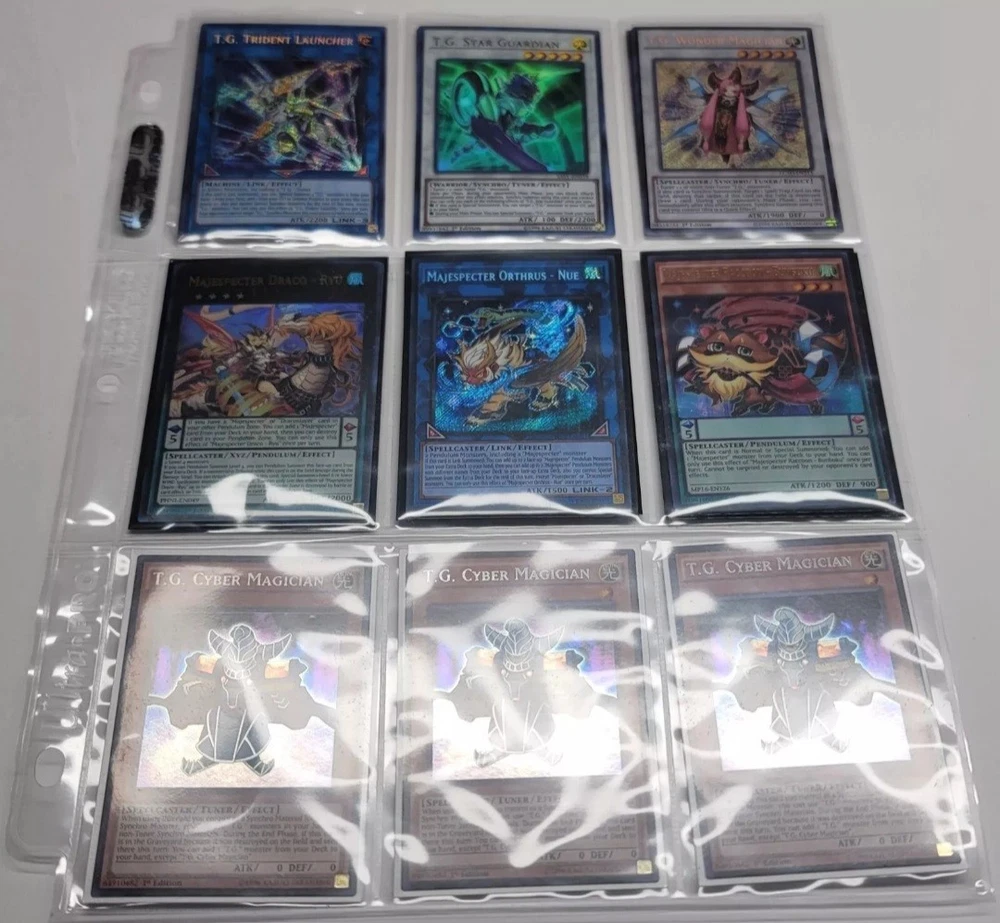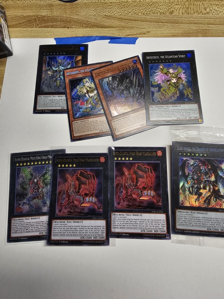 selling a large yugioh Bulk Lot with up 1600 or more Cards, and 2x Albaz Strike Structure Deck (both 1st ed). finally large 7 bulk baggies of yugioh cards. and some extra holo cards. all items will be bubble wrapped and shipped in a box. ( read bottom as well please.) all cards in the bags are mixed Rarities lots of commons and Holos cards. also includes super Quantal Deck core 2x Super Quantal Mech Beast Magnaliger WIRA-EN036 Ultra Rare 1st Ed Yugioh Lightly Played. 1x Super Quantal Mech King Great Magnus - WIRA-EN037 - 1st Ed Secret Rare Modernly played. and some other cards. 1x firewall dragon darkfluid - neo tempest treahertz (secret rare form mega tins pack) 1x maliss Q hearts cryper (ultra rare) 1x Maliss Q white binder (super rare) 1x Maliss Q red rasom (super rare) 1x maliss P dormouse (super rare) 1x maliss P chessy cat (super rare) 1x maliss C GWC-06 (super rare) 1x maliss C TB-11 super rare) Selling a lot of mixed cards mostly of Majespecter and T.G cards. There are 18 cards listed. The binder will be shipped in a bubble mailer. all cards should be lightly played. Cards listed: 18 2x majespector draco - ryu (ultra rare) 2x majespector raccoon - bunbuku (ultra rare) form mega tin 1x majespector orthus - nue (secret rare) 1x majespector fox - kyubi (common) 3x T.G. wonder magician (secret rare) 3x T.G. star guardian (ultra rare) 3x T.G. trident launcher (secret rare) 3x T.G. cyber magician (secret rare)total. All cards are mixed rarity's. The card will be shipped in a bubble mailer. The listed 14 cards: 1x Overload fusion (ultimate rare, unlimited and damaged.) 1x judgement the dragon of Heven (JUMP PROMO ultra rare) 1x terraforming (secret rare, unlimited) 1x heavy storm (common, 1st edition) 1x trap dustshooot (common, lightly played and unlimited) 1x card destruction (super rare, damage and unlimited) 1x giant trunade (common, 1st edition and damaged) 2x last will (common, unlimited and damaged) 1x snatch steal (common, 1st edition and lightly played)