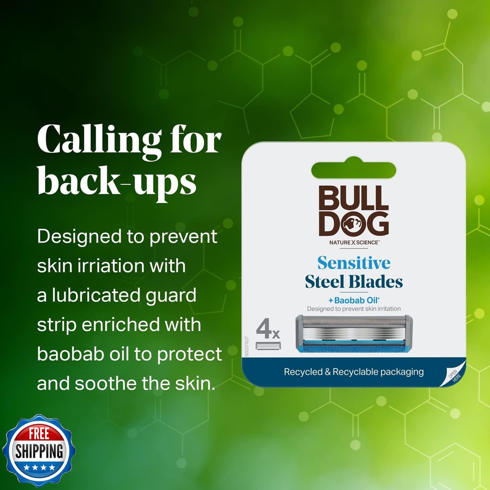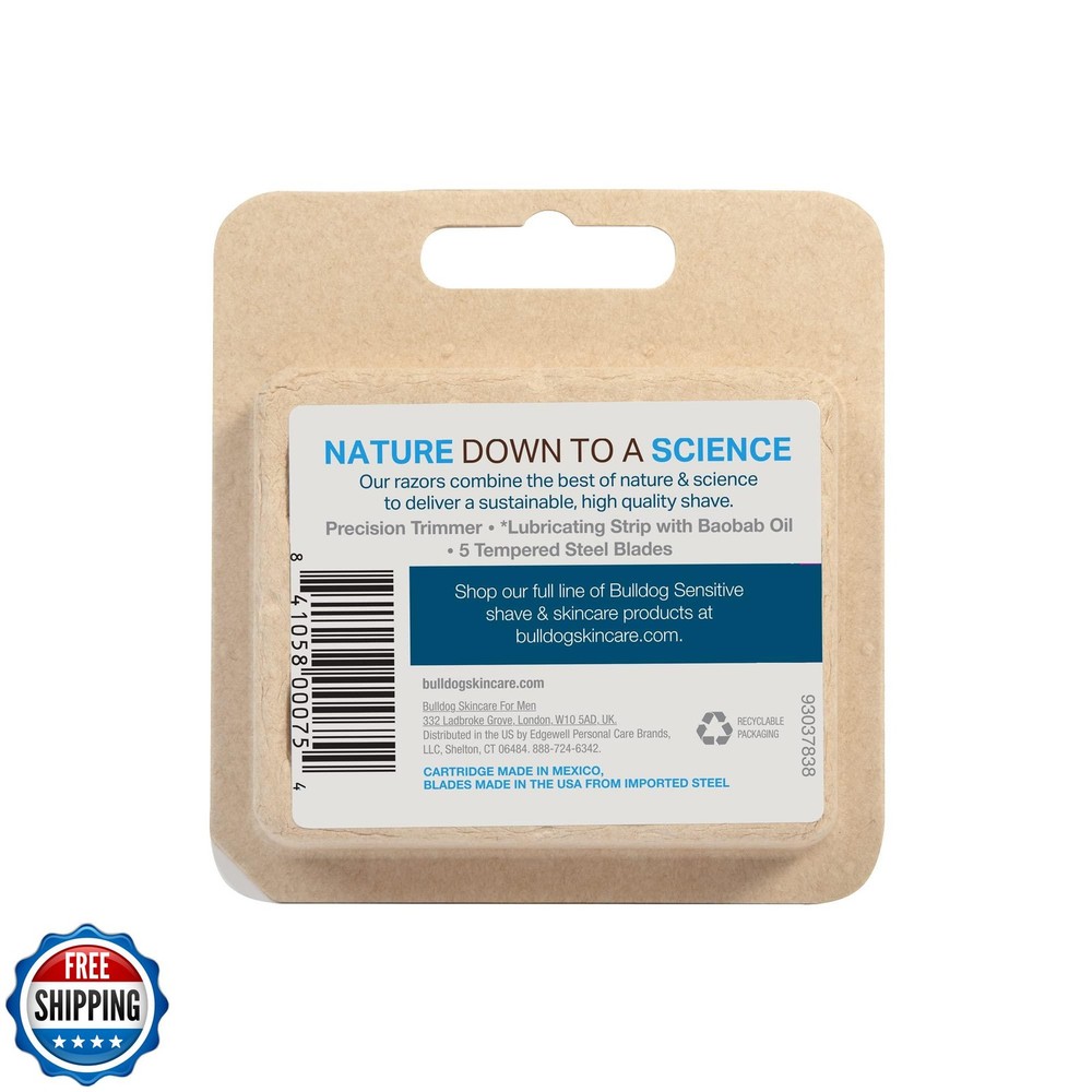 Bulldog Mens Skincare and Grooming Sensitive Skin Razor Blades Refills for Men, 4 Count Features Each mens razor refill features 5 tempered steel blades for a close, comfortable shave. Precision trimmer on the back of each cartridge for those tricky spots and perfecting your facial hair style. Lubricated guard strip enriched with baobab oil to protect and soothe the skin. Eco-conscious mens razor blade refill with a focus on reducing waste and promoting sustainability. The razor blade refills pack is designed with simplicity and ease of use, embodying Bulldog's straightforward skincare approach. Shipping Free & Fast Shipping: We offer free shipping to most of the USA with a normal delivery time of 3-7 days. However, due to the current situation, additional delivery time (up to 3 weeks) may be required for some items. Alternative Carriers: We may use alternative carriers (e.g., USPS, FedEx, UPS) to ensure your package arrives safely and on time. Due to the use of multiple carriers, we are unable to provide a tracking number automatically. Handling Time: Orders are processed and shipped within 1-2 business days of receiving cleared payment. Shipping Restrictions: Shipping to Alaska, Hawaii, Puerto Rico, Guam, and other US territories may incur shipping charges or delivery restrictions. Please contact us before ordering, or your order can be refunded/cancelled. State Restrictions: Certain items may not be shipped to California due to state regulations. Contact for Tracking Updates: If you require tracking updates or have any concerns about the delivery of your order, please feel free to contact us, and we will be happy to assist you. Return Policy 30-Day Hassle-Free Returns: If you are not completely satisfied with your purchase, you can return the item for free within 30 days of receiving it for a full refund or exchange. Easy Return Process: Contact us, and we will provide you with a prepaid return shipping label and detailed instructions. No Restocking Fee: There are no restocking fees for returns. However, the buyer is responsible for return shipping costs if the return is not due to a seller"s error. Refund Processing: Refunds will be processed within 1 business day of receiving the returned item in its original condition. Feedback Your feedback is extremely important to us. We strive to provide the best products and customer service possible. If you are satisfied with your purchase, please take a moment to leave us a positive review. If you have any concerns or issues with your order, please contact us before leaving negative feedback. We are committed to resolving any problems and ensuring your satisfaction. Contact Us If you have any questions or concerns, please feel free to reach out to our customer support team. You can contact us through the eBay messaging system. We are available Monday to Friday, 9:00 am to 5:00 pm EST, and we will do our best to respond to your inquiry within 24 hours. Thank you for supporting our small family business!