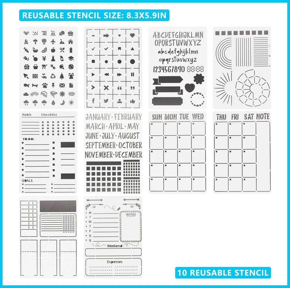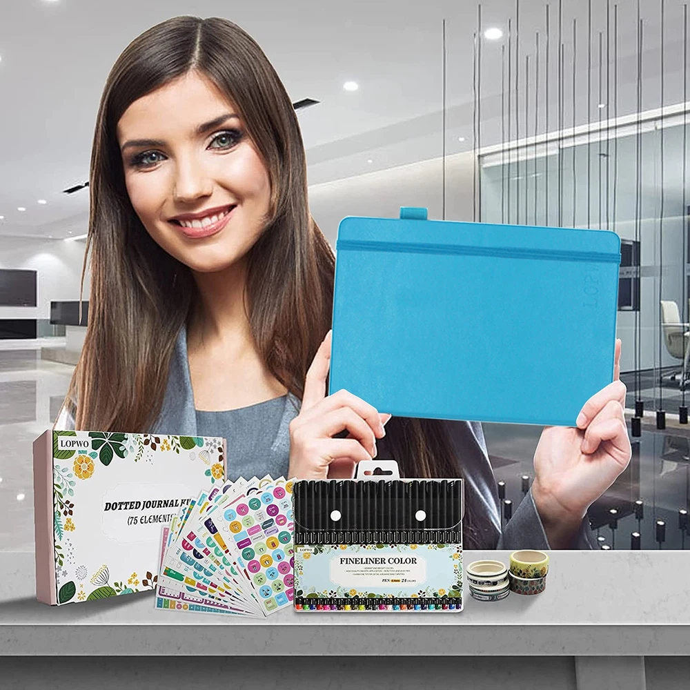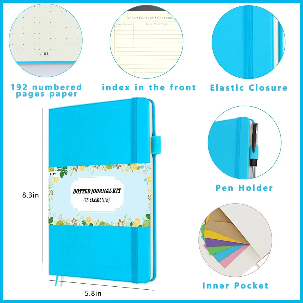 1 Dotted Hardcover Notebook: The faux leather point journal has 192 Numbered pages and size is 5.8”x 8.3”. The premium thick and acid-free dotted paper ensures resistant to bleeding and ghosting. It includes an Elastic Closure,1 Pen Holder Loop,2 Bookmarks,1 Back Pocket with humanized fillet design. 6 Washi Tapes and 10 Mini Envelopes with 10 Insert Card: 6 cute washi tapes in 3 sizes (0.3cm, 0.8cm and 1.5cm), these decorative tapes are perfect for adding color and small element to bullet dotted journal. 10 small envelopes and insert cards makes your journaling lots of fun. 24 Fineliner Pens and 2 Black Pens: 24 unique vibrant colored pens are best for dotted journal drawing, sketching and coloring. 2 black pens (0.5mm) are good for daily writing. 10 Reusable Stencil and 12 Sticker Sheets: 10 reusable journal stencils are durable and flexible, confirm to your A5 dot grid perfectly. 12 beautiful, fun planner stickers ensure your work finishing more attractive. Perfect Dot Journal Kit: The stationary set packed with a elegant box keep your energy active, various accessories support your life more colorful. It's also a best Christmas gift for women and men, teen boys and girls.