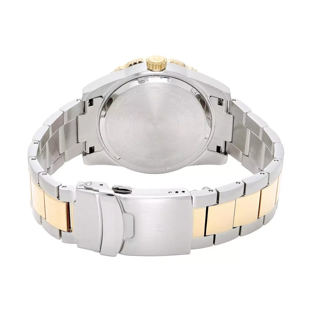 WELCOME! NEW WITH TAG COMES IN BULOVA BOX WITH MANUFACTURER BOOKLET SEE PICTURES PICTURES ARE PART OF ITEM DESCRIPTION ~USED STOCK PHOTO ~ BM-493 WATCH INFORMATION: Add a classy touch to your look with this handsome men's diver watch from Bulova. FEATURES Date window DISPLAY Dial color: blue Luminescence: hands & hour markers Face cover material: mineral crystal CASE Material: stainless steel Diameter: 44 mm BAND Material: silver-tone & gold-tone stainless steel Clasp: fold-over deployment Width: 22 mm DETAILS Movement: quartz Power: battery WILL FIT WRIST SIZE 8 3/4" (APPROXIMATE) PHOTOS MAY HAVE BEEN ENLARGED AND/OR ENHANCED All measurements are approximate and may vary slightly from the listed dimensions. WE DON’T RECOMMEND WEARING YOUR WATCH IN SHOWER/SAUNA OR OTHER SIMILAR ENVIRONMENTS IF YOU ENCOUNTER WATER DAMAGE YOUR WATCH PLEASE CONTACT MANUFACTURE, WE ARE NOT RESPONSIBLE FOR WATER DAMAGED WATCH. Return Policy If you are not satisfied with your purchase, you may return eligible items for refund within 14 days from purchase date, buyer pays return shipping. All returns must be filed no longer than 14 days from purchase date; after that time, we are no longer responsible - no exceptions! Return Eligibility Items must be in same condition as you received, meaning unworn unused with tags (if applicable) intact. Conditions which will void your ability to return merchandise includes: Scratching, Breaking, Wearing items, was sized by any other jeweler or lastly, if the auction explicitly says in the description that the item cannot be returned and will be returned to the customer at the customer’s expense, and the refund will not be issued. Once the return is approved, a refund will be issued to the same method used in the purchase. All returns must be inspected and approved by us before the return is finalized. Contact us to get approval of the return. Please allow up to 5 days after we receives the item to process the return and issue credit REQUIRE IMMEDIATE PAYMENT. SHIPPING USPS GROUND MAIL, DELIVERY CONFIRMATION INCLUDED. YOUR ITEM WILL BE SHIPPED SAME OR NEXT DAY AFTER PAYMENT IS CONFIRMED. NO INTERNATIONAL SHIPPING THE WATCH OUT OF USA CAN'T BE RETURN FOR ANY REASON. To International Customers Using Freight Forwarding Companies, Agents, or Entities: Contracting with a freight forwarding company, agent, or entity, releases Allbestwatches from any and all liability regarding your purchase from the date the purchase is received by the freight forwarding company, agent, or entity. You, the customer, assume responsibility for any and all cosmetic or mechanical defects and/or receiving the purchase from the freight forwarded. I ship to the confirmed address on file with Ebay and will not ship to a third party address Please make sure your address is correct on Ebay PRIOR to payment If necessary correct address before payment is made, corrections made after payment is submitted will NOT reflect on your purchase THE WATCH OUT OF USA CAN'T BE RETURN FOR ANY REASON.
